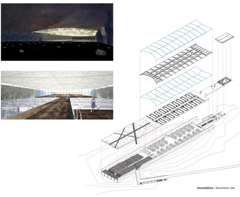 屋顶由舒展的织物构成,采用双层聚四氟乙烯膜,约130×40米。这不仅可以让自然光线渗透进酒庄,让它在没有人工照明的条件下运行,还为建筑可以有效应对智利的自然灾害提供了基础条件。