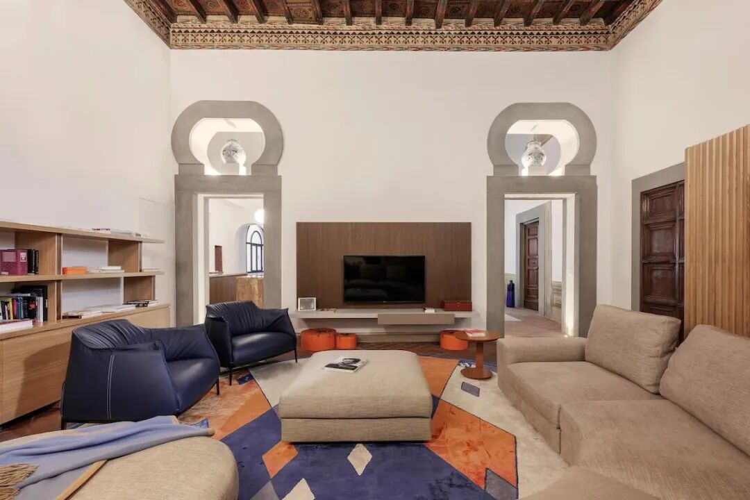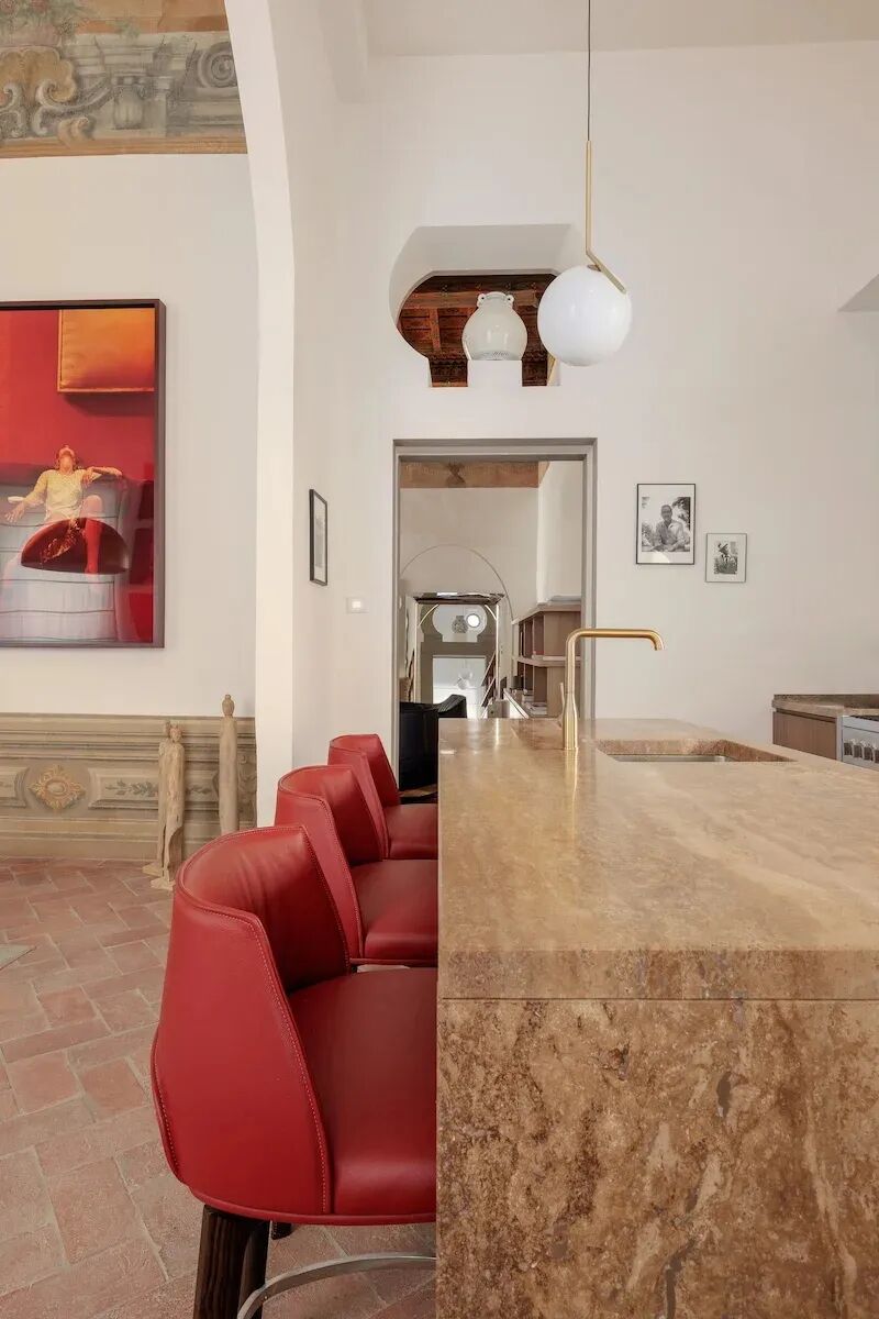 An old story that can be lived in the present. Contemporary works of art, artists' photographs and beautifully designed pieces are mixed in the spacious Spaces, space materials, decorations and frescoed ceilings.