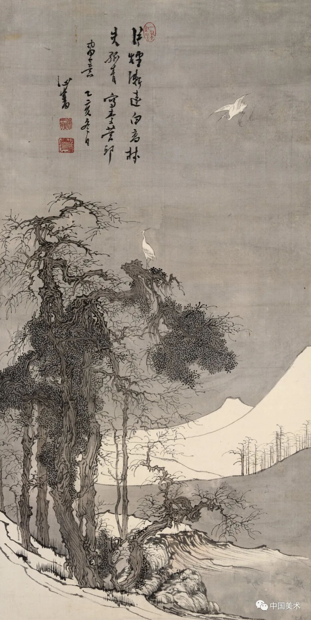 明 蓝瑛 《雪溪载鹤图》