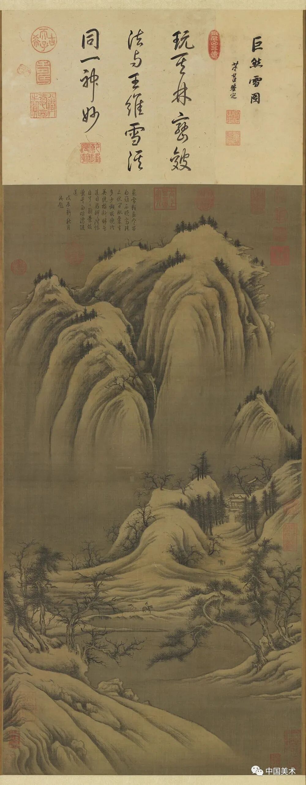 唐宋之交的五代时期不乏对传统山水画产生极大影响的画家,荆浩、巨然、关仝、赵幹都是五代时期雪景山水题材的代表人物。