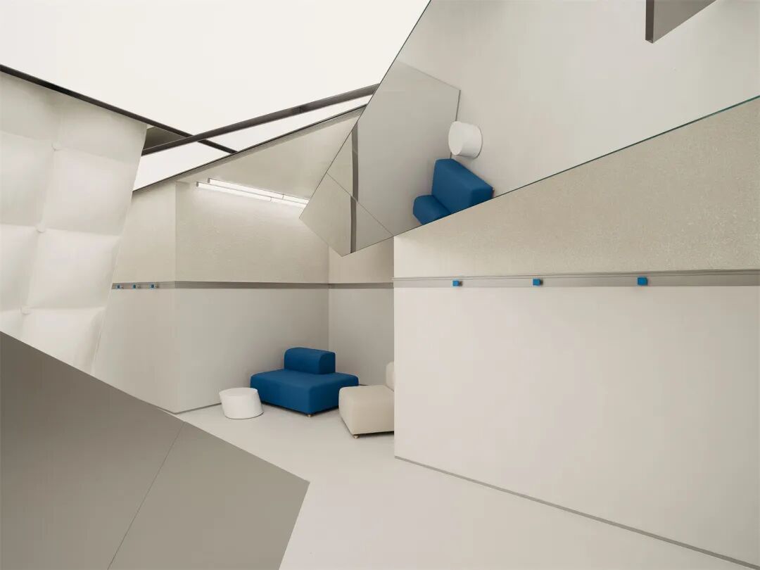 分布在不同高度的“镜面碎片”互相咬合,以难以预料的方式扭转人们视线,同时让观察视角更加多元动态,空间随之拥有的不同“表情”叠加碰撞,令人体会到行走在错综复杂的城市网络中。