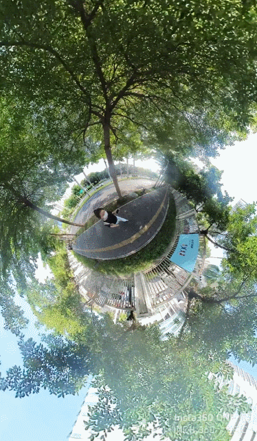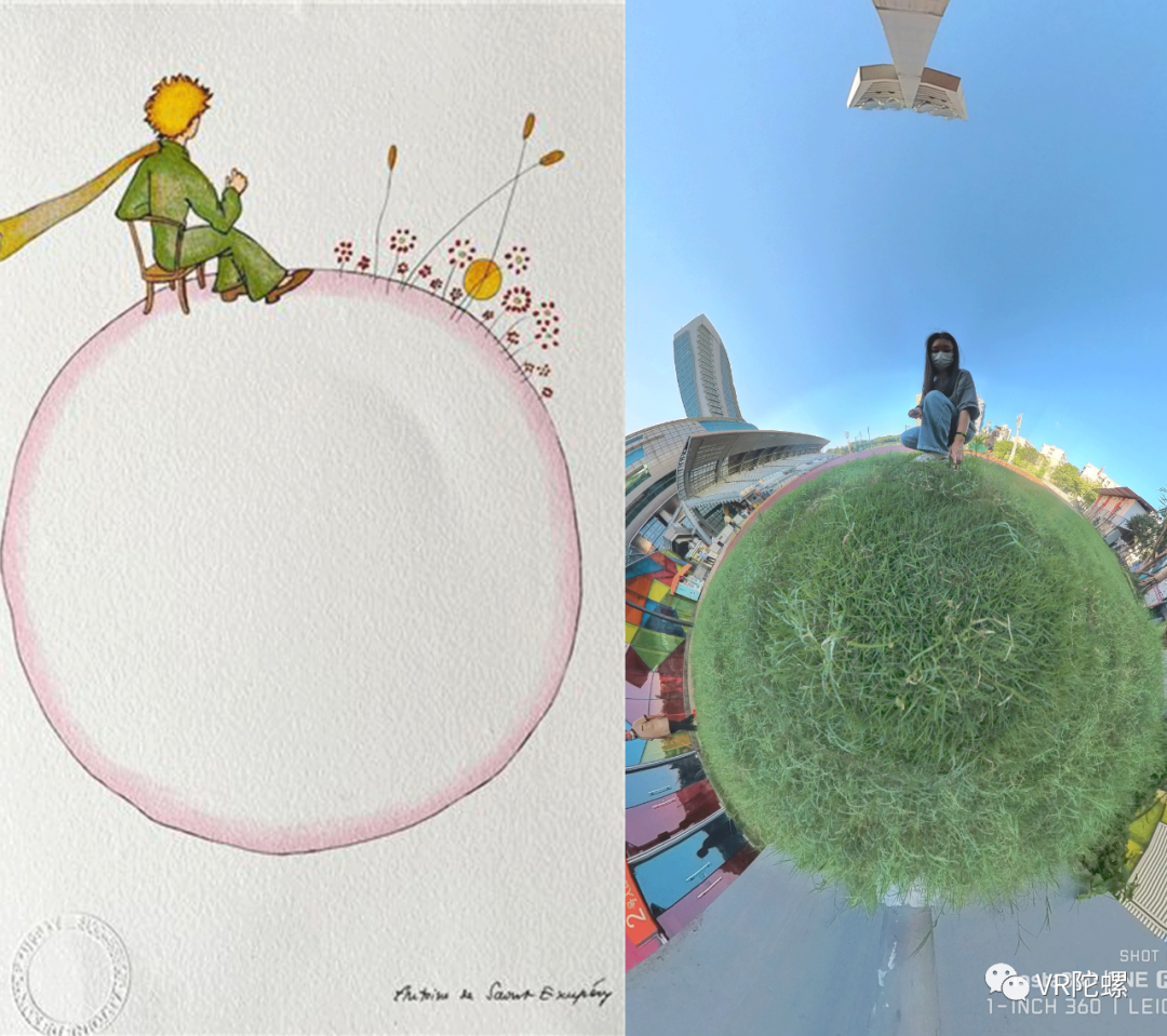 得益于全景图像/视频可360度角查看,以相机为圆心的全景内容衍生出许多代表性的玩法,比如小行星。小行星效果带给人的视觉感受十分接近《小王子》的星球,走起来,感觉更像。