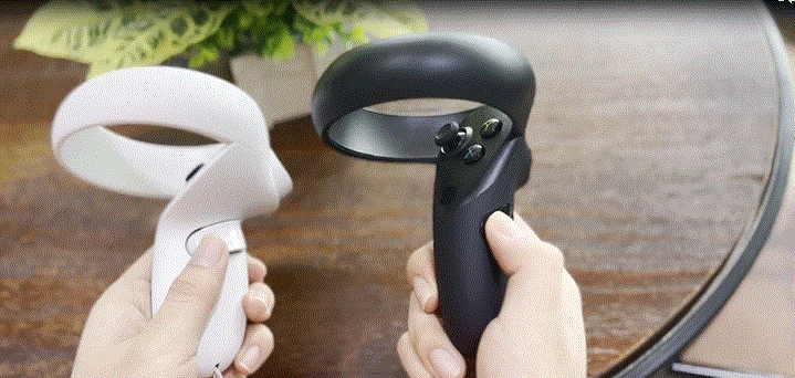手柄也采用视觉定位,形态设计与 Quest 2 类似,不过更为轻巧,特别是侧键的设计与 Quest 2 手柄有明显差异。