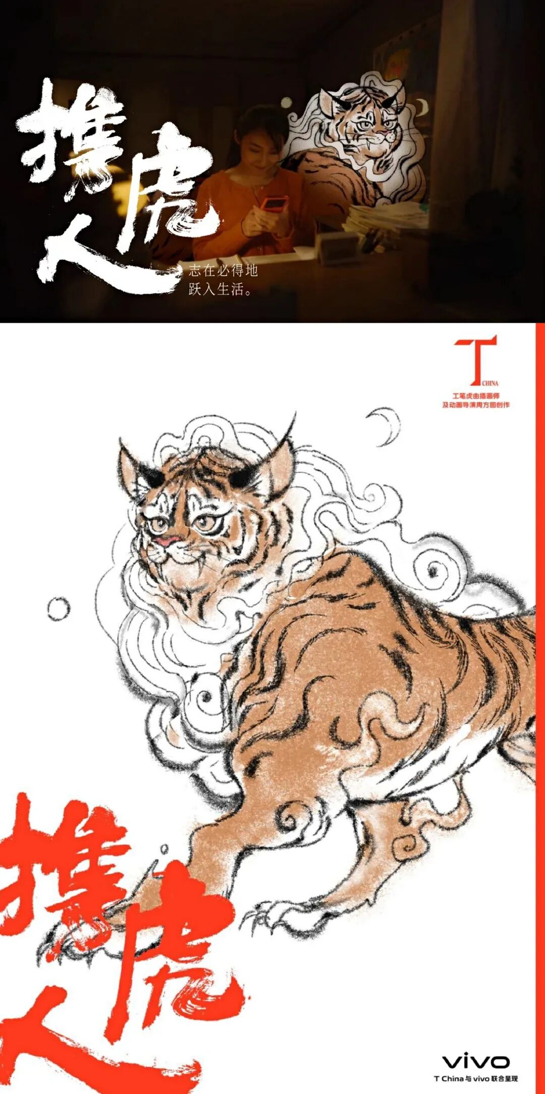 联合打造了春节短片《携虎人》