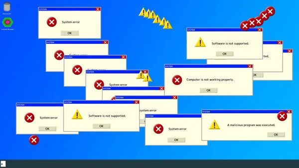 这款《电脑病毒模拟器》并不是真的在你的电脑里安装病毒,而是进入一个名为「Door OS」的系统,在该系统里体会到各种突发病毒事件状况。比如经典的窗口无限弹出、系统错误与画面瓦解宕机的状况都有,算是相当常见的病毒发作状况,甚至还有模拟经典的蓝屏状况。