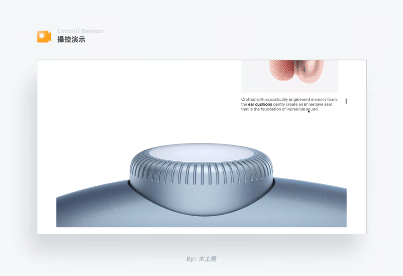 对于耳机上可以交互的地方,做了动画示意消费者交互的方式。