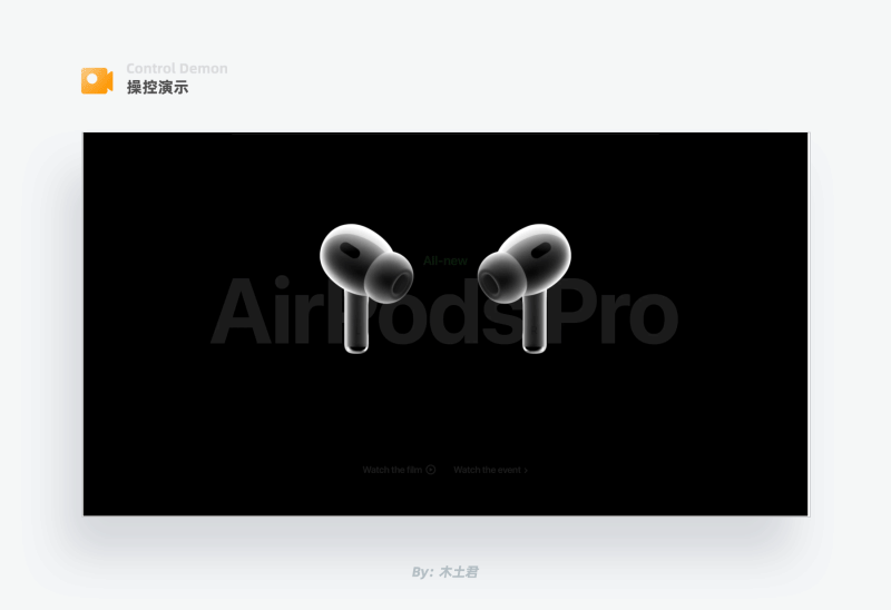 佩戴者逐渐消失,耳机旋转到发生孔的地方逐渐放大,镜头从中间穿过,很自然的出现和音质相关的文案,用户很容易接受并感知到苹果想要让他们了解的卖点。