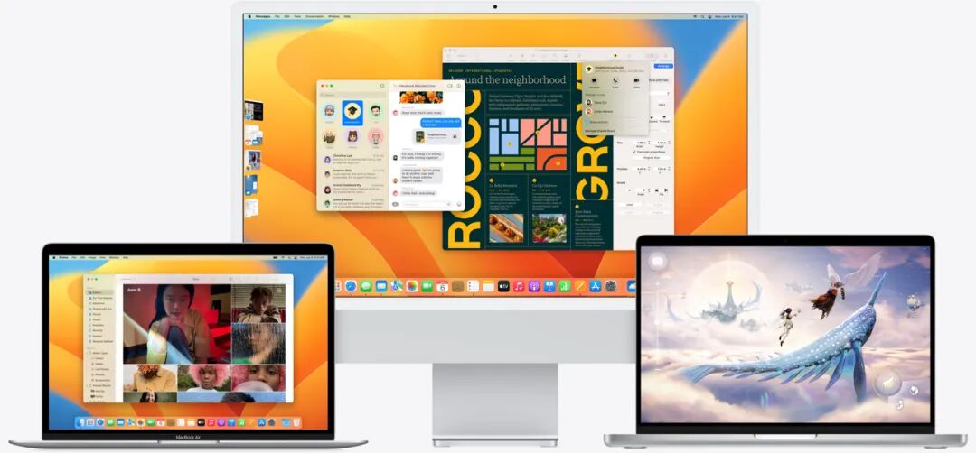 iOS 16“台前调度”新功能也方便了“全家桶”多任务处理,窗口的大小可由用户依据自身需要灵活调整,帮用户将一部Mac上打开的所有App和窗口自动整理成单一视图,轻松切换。