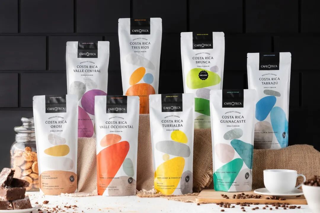 以不同色彩搭配抽象化的方式表达出咖啡粉风味中的不同口味