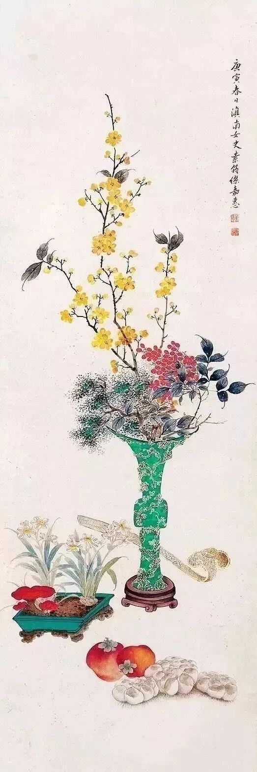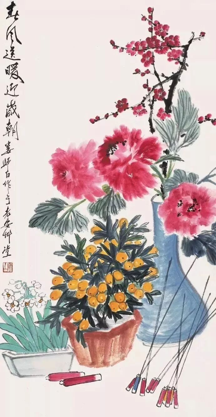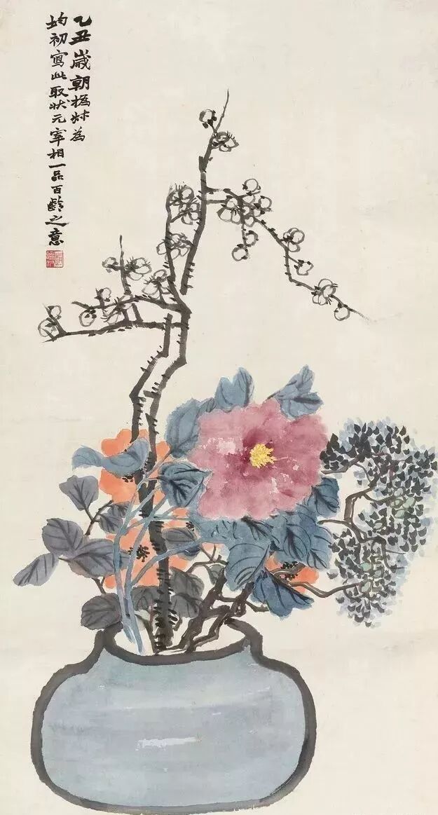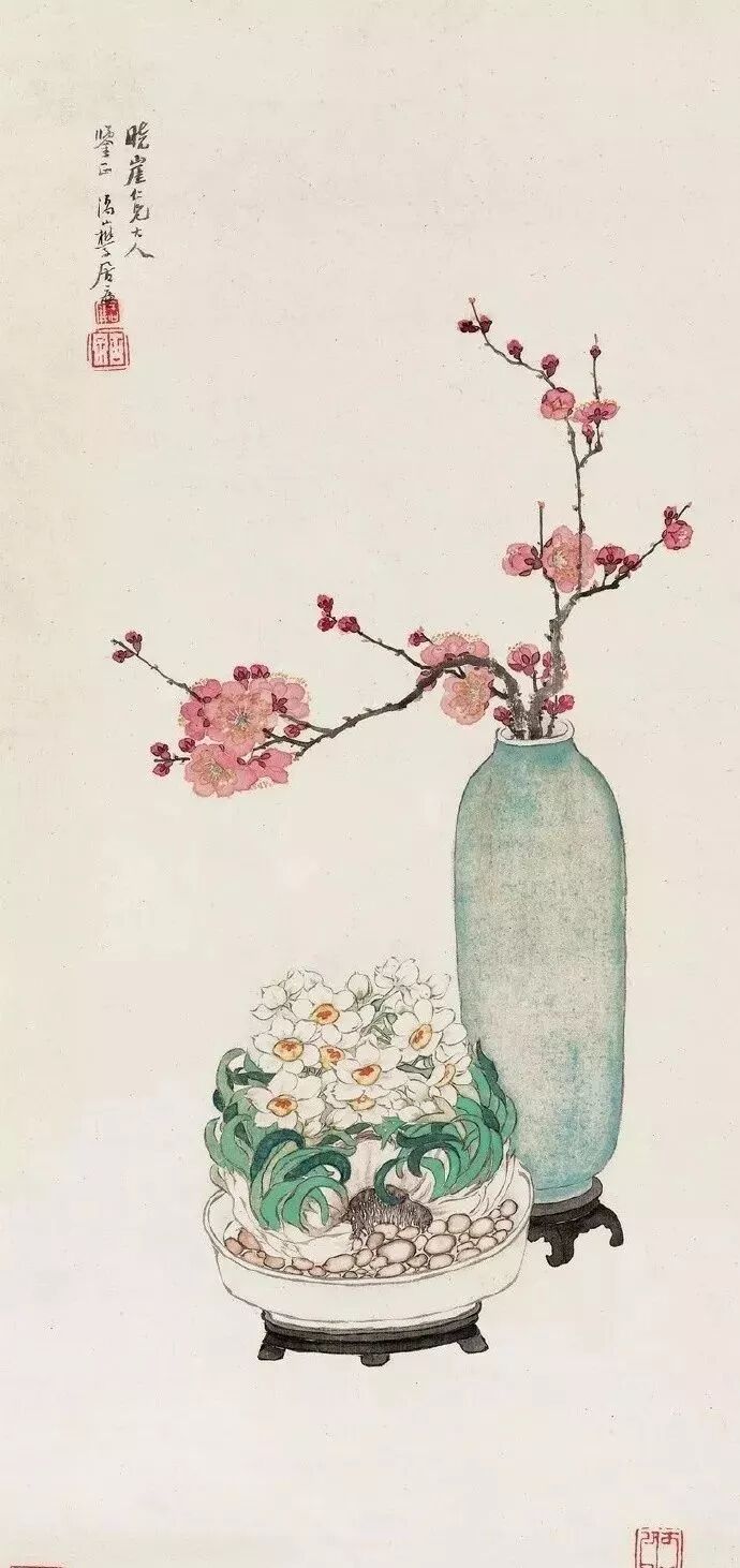 瓶花绘画,亦成为文人画家特爱的品种。新春时节,或某一节日,特绘一幅瓶花图,抒发某种胸臆、情感,也算是一种文人画家独有清趣。