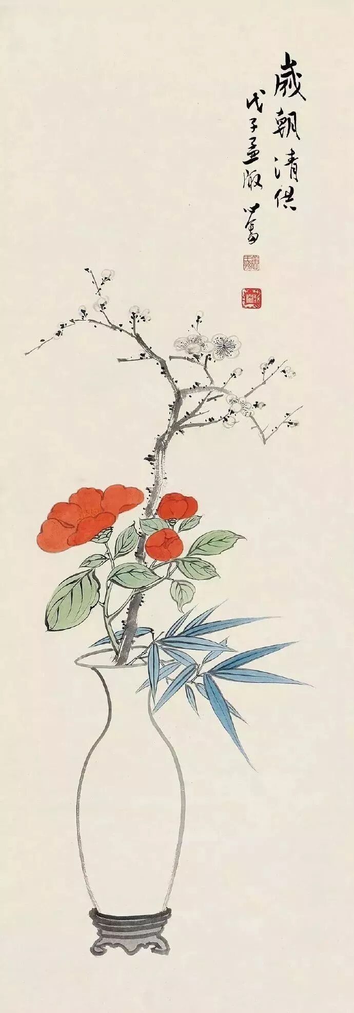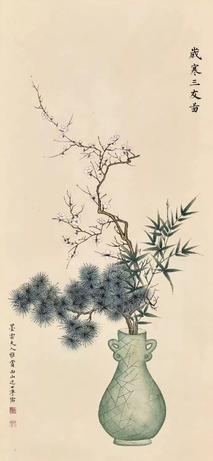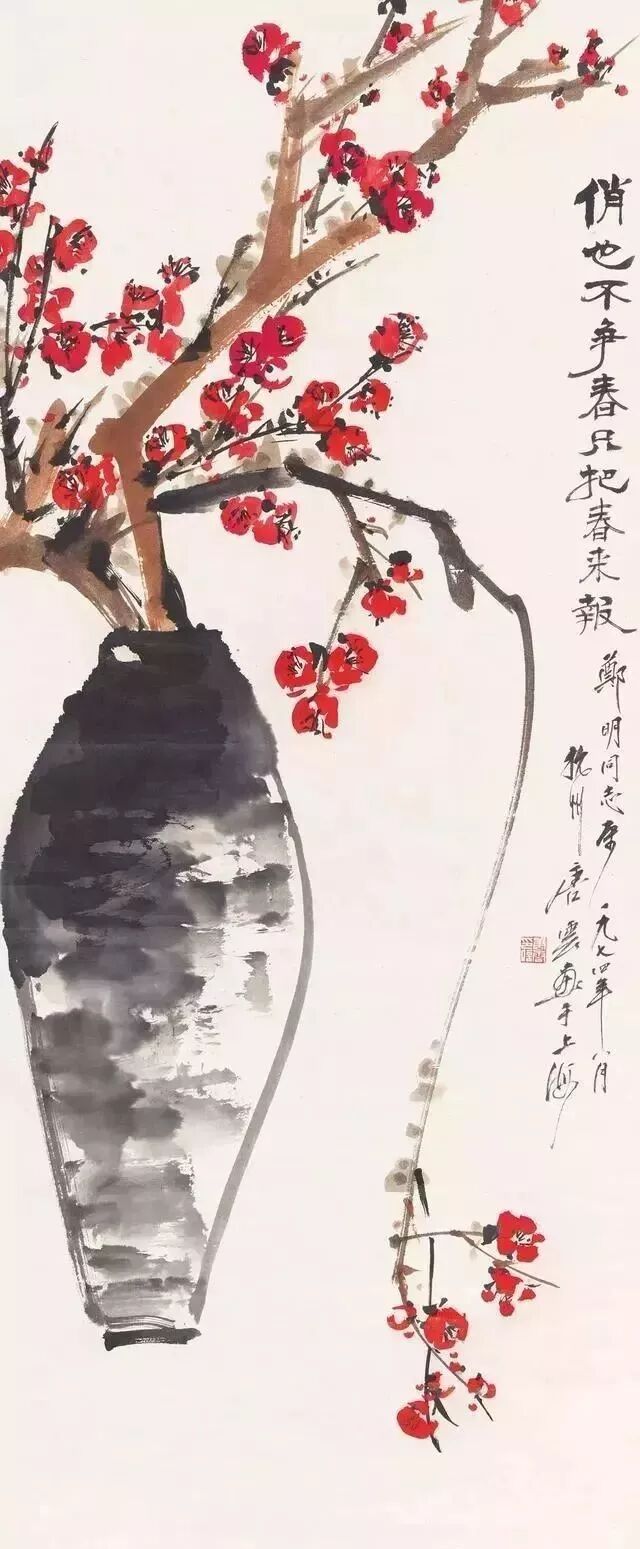 瓶花绘画,亦成为文人画家特爱的品种。新春时节,或某一节日,特绘一幅瓶花图,抒发某种胸臆、情感,也算是一种文人画家独有清趣。