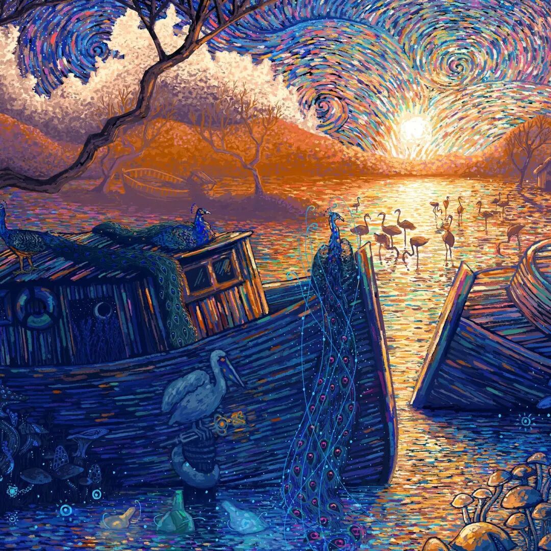James R. Eads喜欢梵高艺术的思考和冥想方式,把对自然和生命的思考融入画面,用运动和色彩创作出在现实和虚构之间摇摆的印象派梦幻画作。