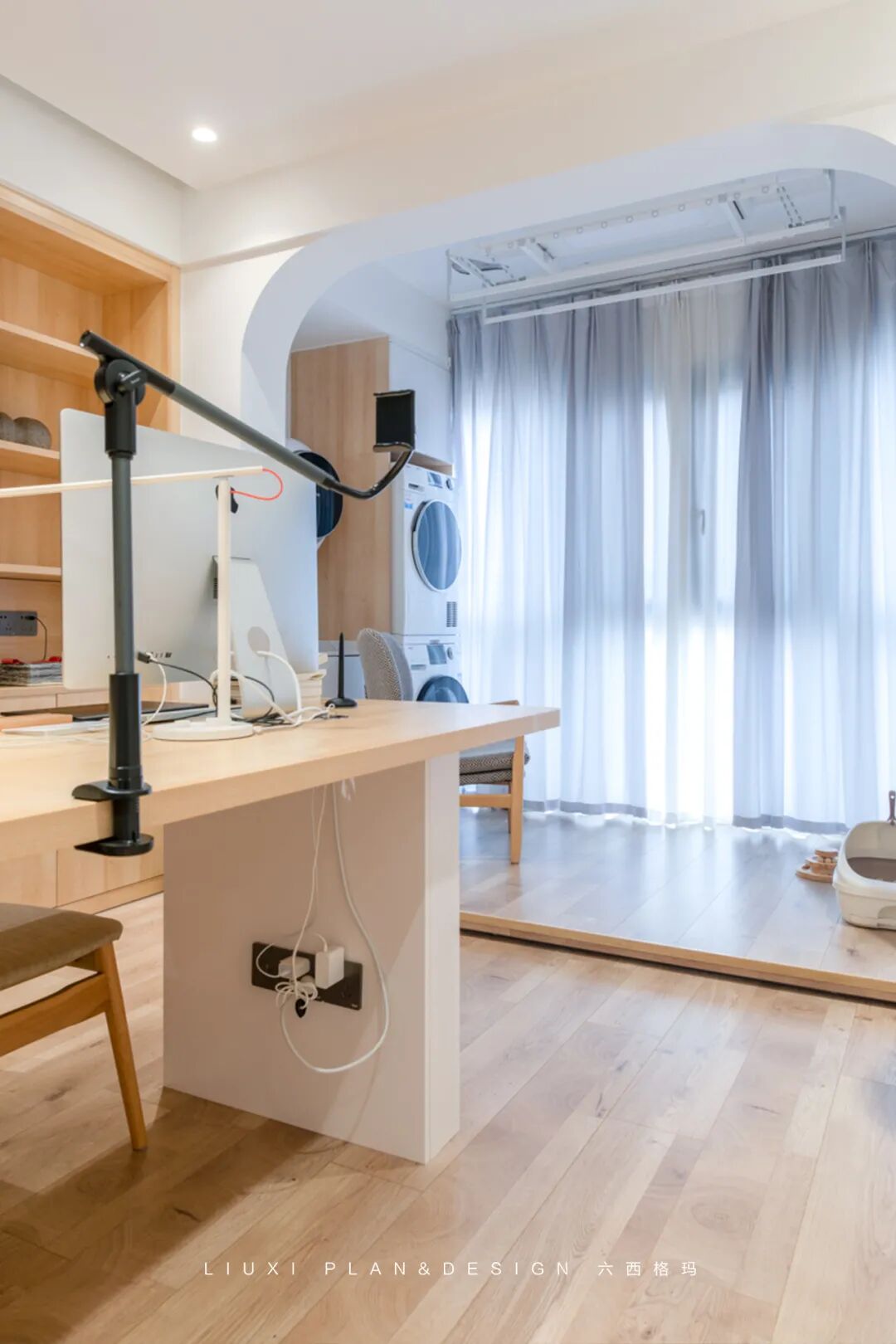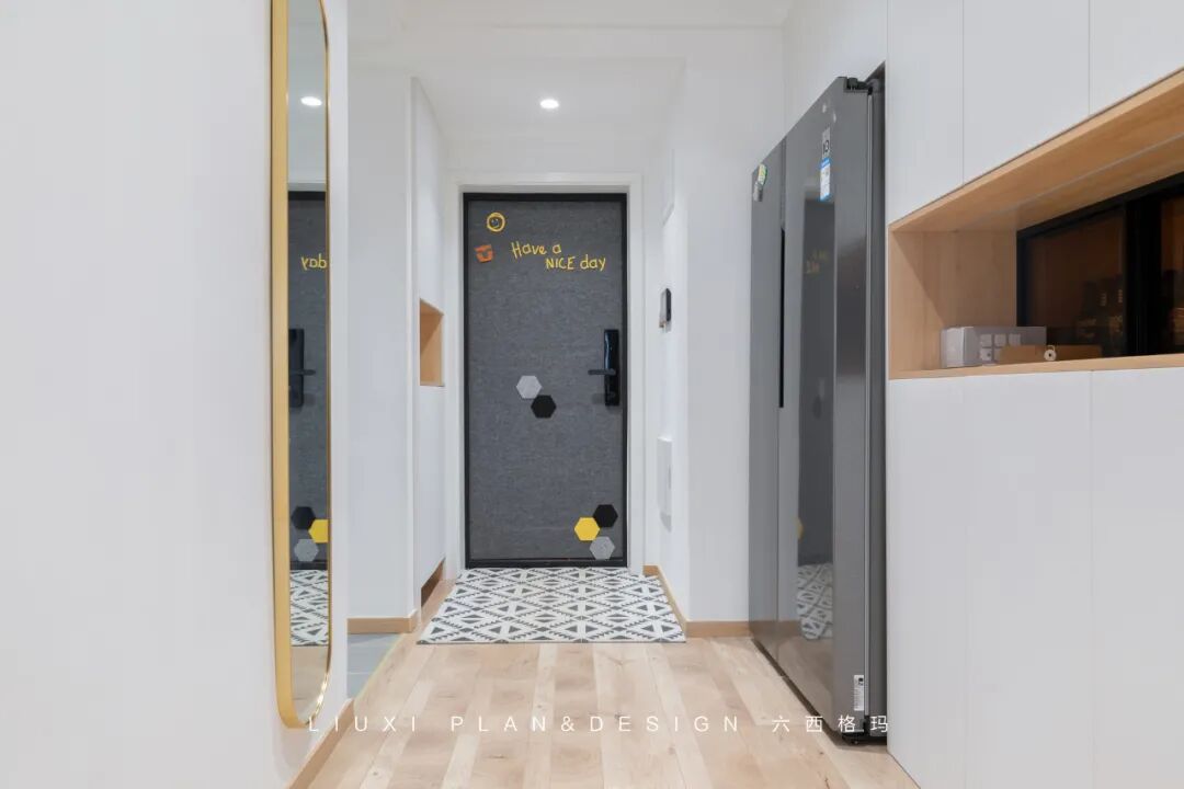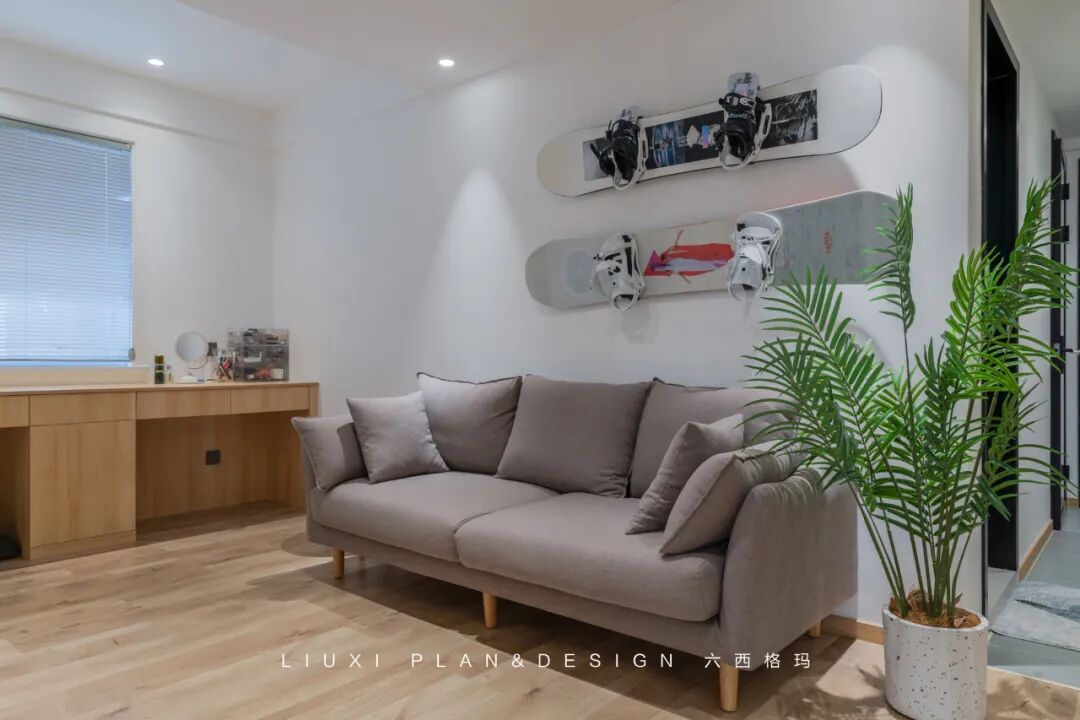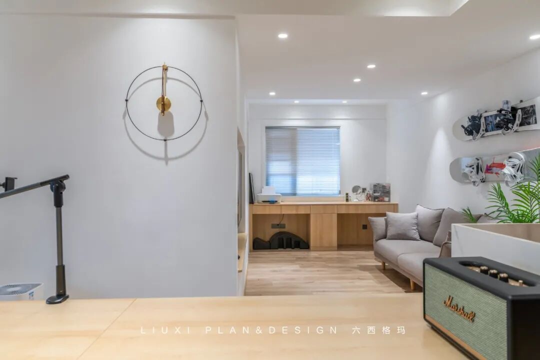 作品集2023-10-30 平面设计师的个性居家办公Home,89㎡三房改一房,一人居就是这么任性! 本案是一套面积为89平米的小三房,业主是自由职业,从事平面设计创意类的工作,有在家办公的需求,想要一个大一点的办公环境,爱好冲浪、滑雪,目前是屋主一人居住,三房改成一房,以提升屋主居住体验。 图赏 ▲原始测量图 ▲平面布局图 | 玄关 | 入户右手边的到顶鞋柜,简洁又实用。穿衣镜的安置,既增加了业主换装的便利,又提升了区域空间的明亮度。 收纳柜采用一门到顶的设计,整体色调为白色,加以木色点缀,营造出简约舒适自然风。提前预留好的冰箱尺寸,使得冰箱恰当好处的嵌入柜体,整体效果美观实用。 | 客厅 | 客厅静谧舒适,无主灯的天花简洁、干净;木质的地板温润淳朴,流露着质朴自然的气息氛围。 木色的家具搭配灰色的沙发,让人倍感放松。绿植的点缀,增加空间活力与气息。业主是滑板爱好者,就将滑板作为装饰工具放置在墙上。 | 阳台 | 客厅与阳台打通,实现空间互通与动线流畅。阳台地面整体抬高10公分做地台,摆上一张沙发椅,瞬间多出一个休闲区。 | 办公区 | 根据屋主需求在家设置了一个开阔的办公区域,超长的工作台配置,即使五、六个朋友工作、开会、聚会,也都能容纳得下。 工作台后方是大容量书柜,“开放式”的设计,省去开、关门的琐碎,自由方便。 | 厨房 | 厨房上白下木的分色设计,整体看上去更加小清新,空间显大。 | 卧室 | 床头背景墙采用半墙的形式,木饰面+白色墙漆营造出自然、安定的睡眠氛围。 半墙木饰面不仅是装饰,而且还能充当床头靠背的功能~ 木质踢脚线与木地板搭配,视觉感比较柔和,也非常耐看。 | 卫生间 | 设计师利用一部分房间区域,打造出三分离卫生间,将洗漱、马桶、淋浴区都分开,功能互不干扰,而且干净卫生,提高了业主的生活舒适度。 本文来自微信公众号“亚太室内设计”(ID:ytsnsj)。大作社经授权转载,该文观点仅代表作者本人,大作社平台仅提供信息存储空间服务。 TAGS: 住宅室内改造 相关文章Kleoniki Andr…这是大王Day.281获奖作品《2020最佳图书…精选头像|搞怪来袭!安东尼奥·布埃诺 作品配色清新梦幻的场景插画,充…美国Jennifer Mc…【小鹏设计】设计小改/动力…【首发】地点空间丨打破空间…谢商家不坑之恩!只骗有钱人…