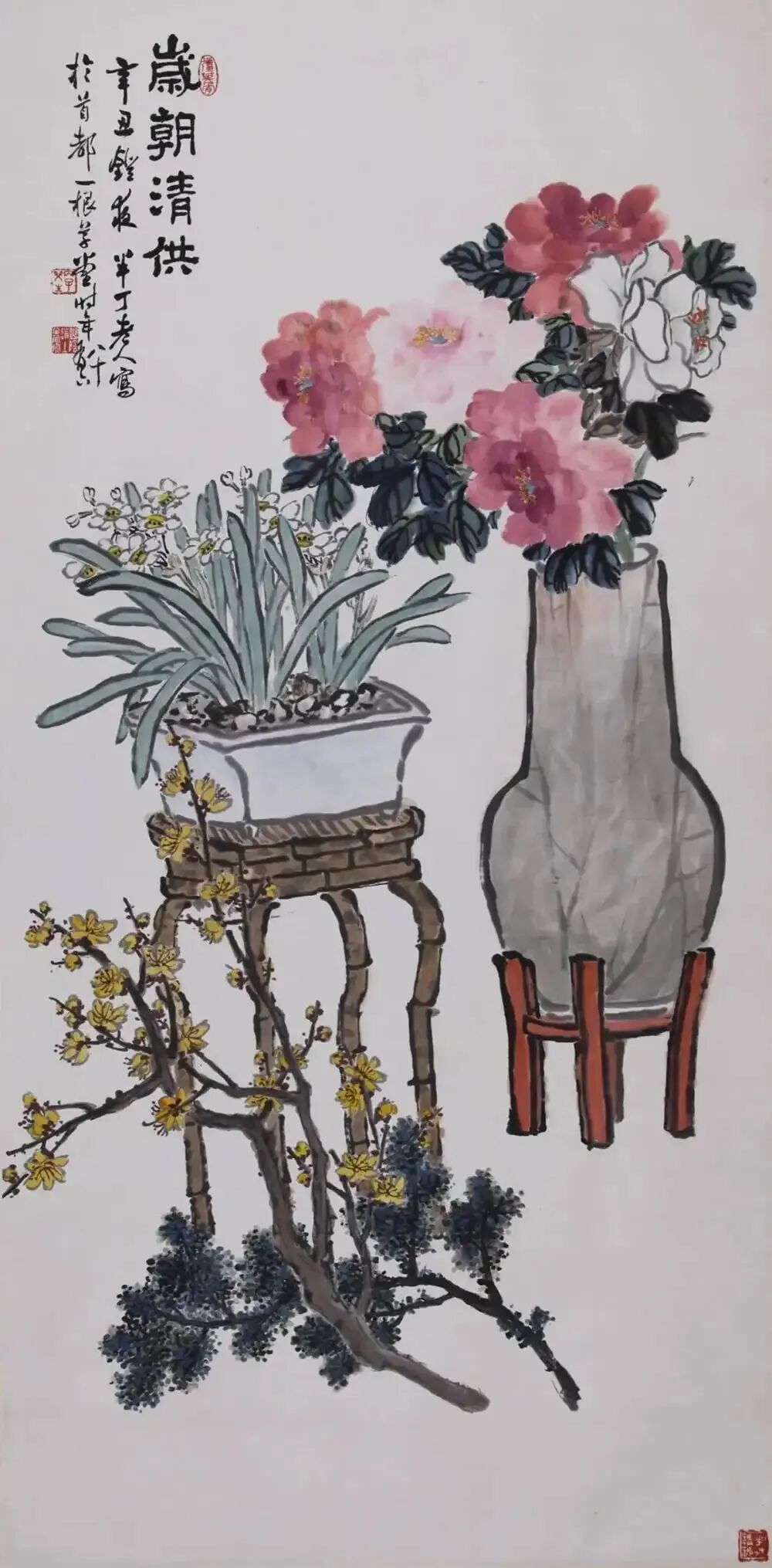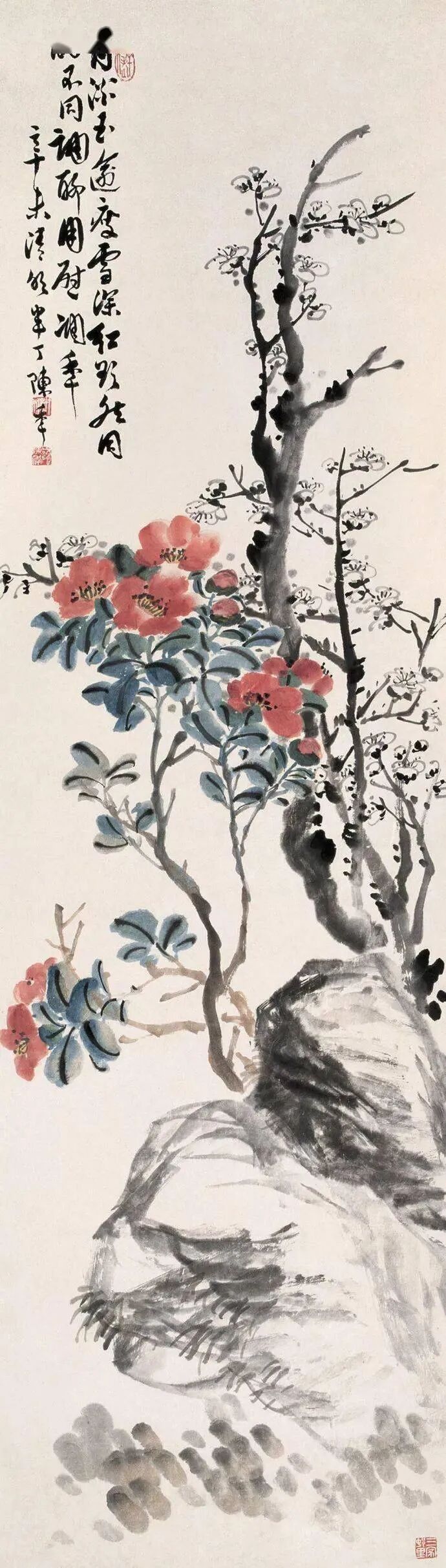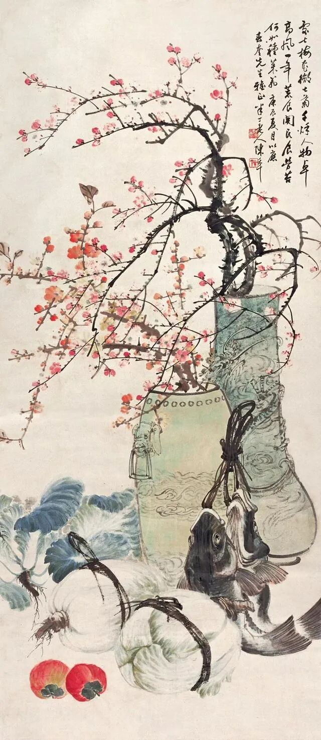 陈半丁早年离家到上海谋生,结识上海任伯年、吴昌硕等诸多名家,尤深得吴昌硕真传。又迁居北京,兴陈师曾、王梦白、齐白石名重京华艺坛。陈半丁早年画风出自“海派”,以涉猎广泛,从徐渭、石涛笔意中得其精妙,自创写意花鸟新风,独具风采。他的书法、篆刻也是匠心独运,功力深厚,为人所称道。