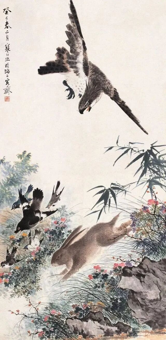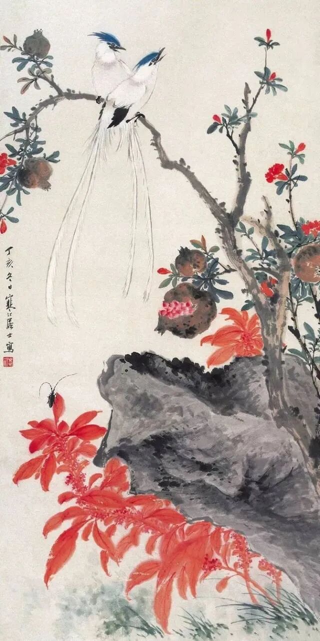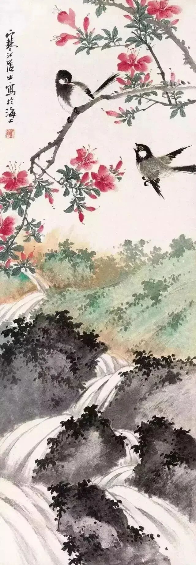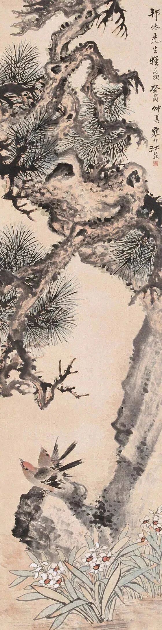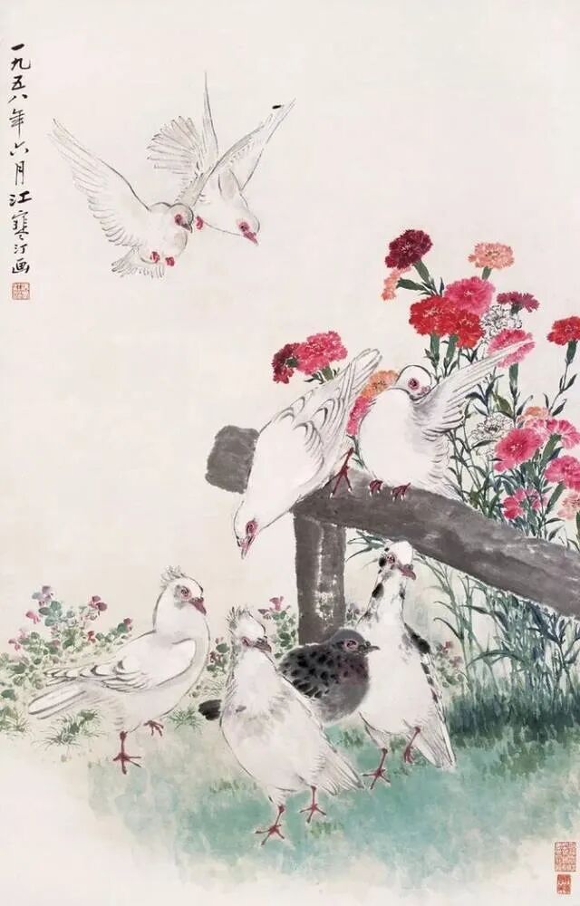 江寒汀自小纵观宋、元名迹,悟其谨严、放纵之情,对双钩填彩、没骨写生均擅长,尤其描绘各种禽鸟,独开生面,堪称绝技。江寒汀为了更好地掌握鸟的特点和造型,在家中养有许多鸟类,长期观察写生,终于写成20余丈长卷《百鸟图》传世名作,成为花鸟画史上的美谈。张大千曾赞誉:“寒汀笔下鸟,天下到处飞。”