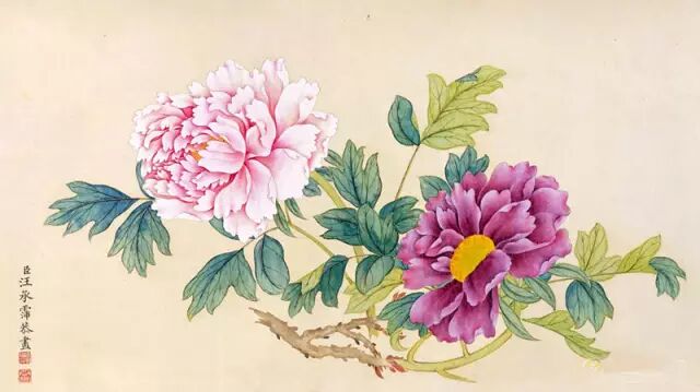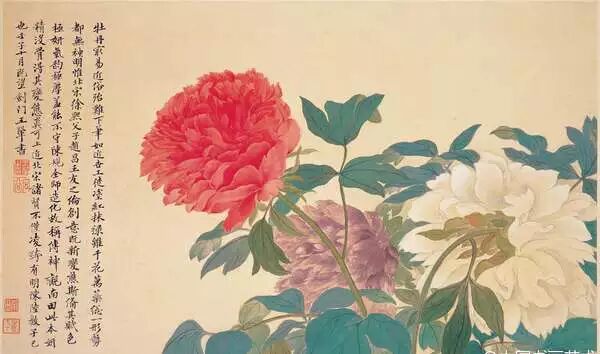 《仙萼长春图之牡丹》局部 郎世宁 清
