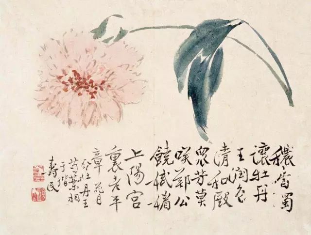 《山水花鸟图册之牡丹》 恽寿平 清代