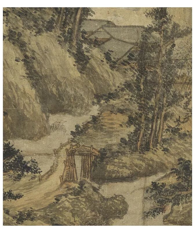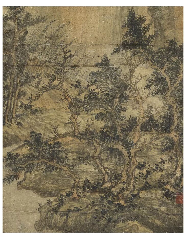 本幅无款,旧签标为燕文贵。燕文贵(活动於11世纪)於宋太宗(976-997在位)时为画院祇候,擅长画山水。但此幅画风已入南宋,约作於十三世纪。