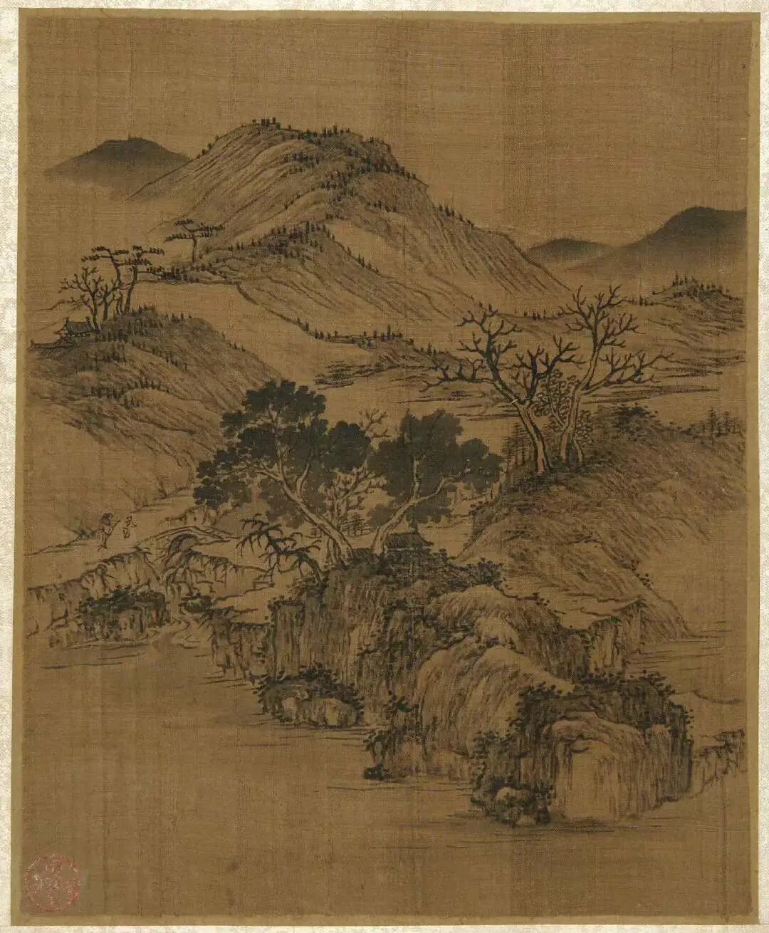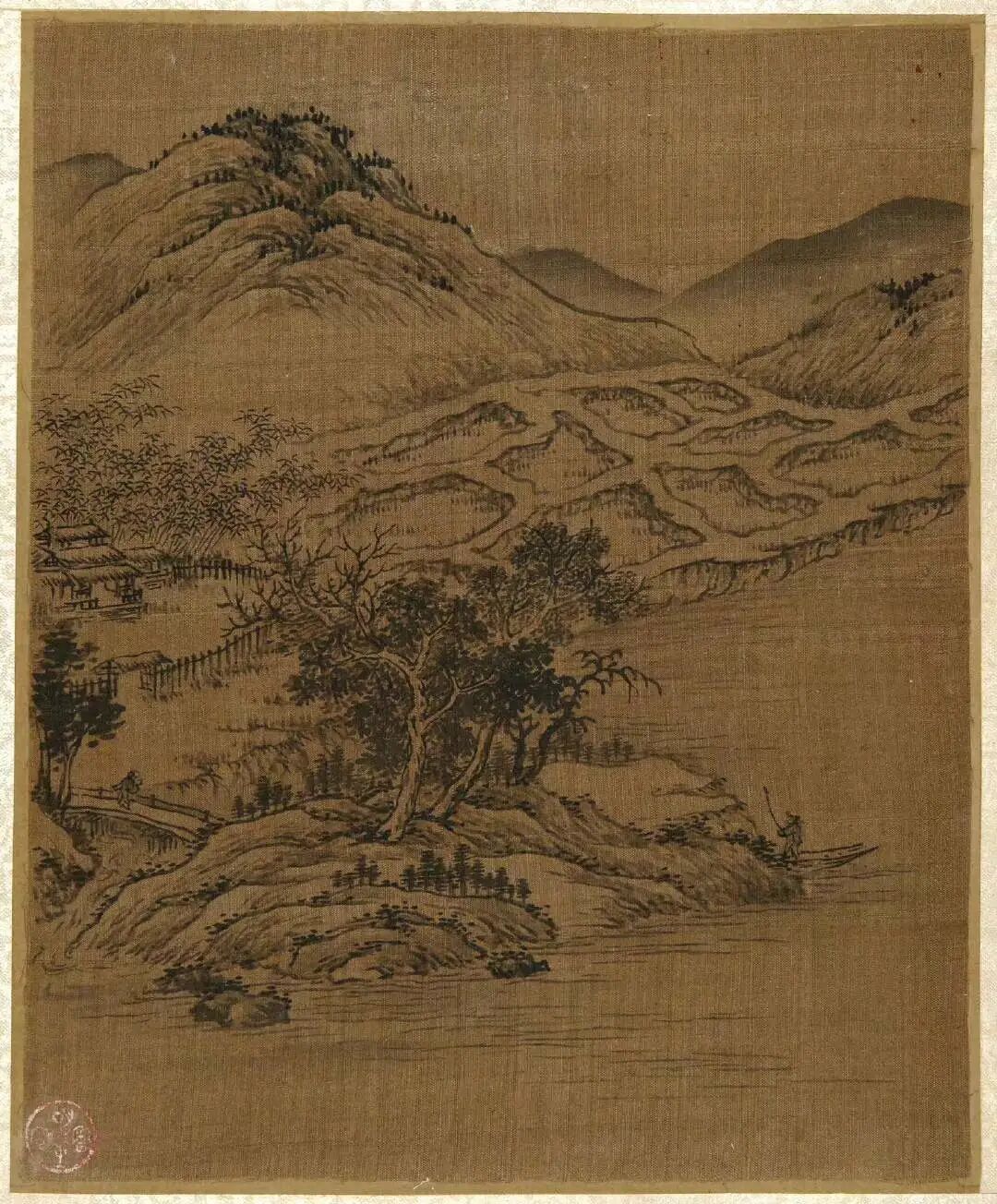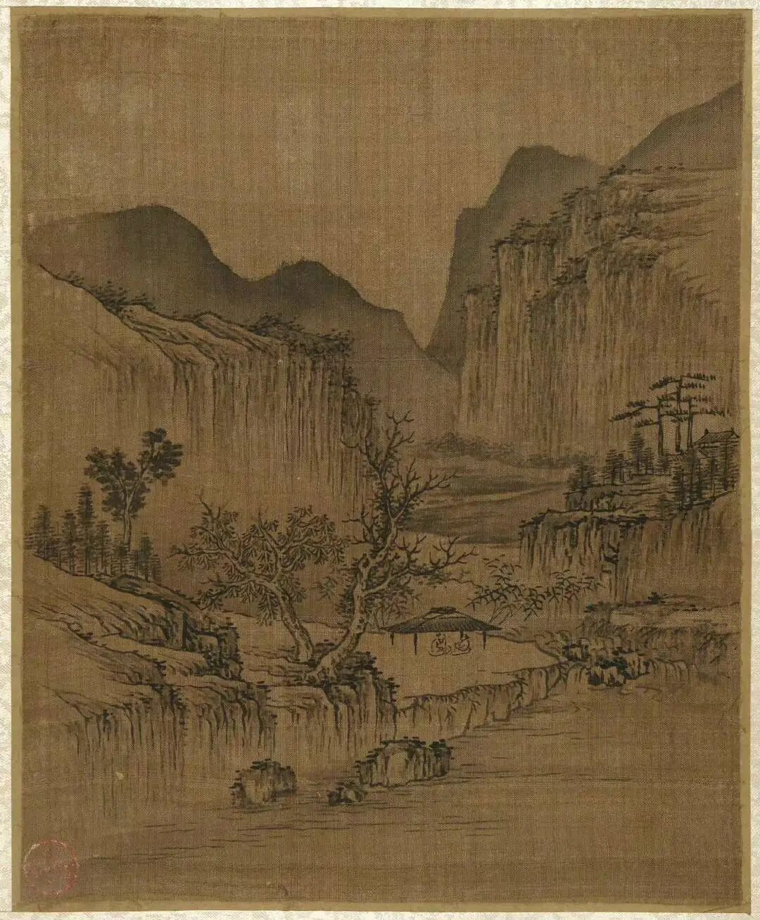 倪瓒的绘画开创了水墨山水的一代画风,与黄公望、吴镇、王蒙并称"元代四大家"。画法疏简,构图多取平远之景,景物极简。