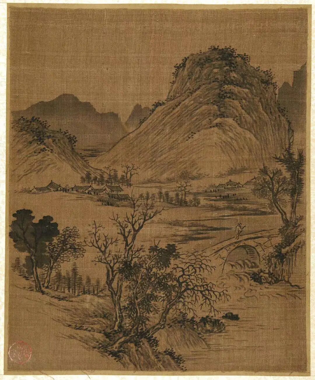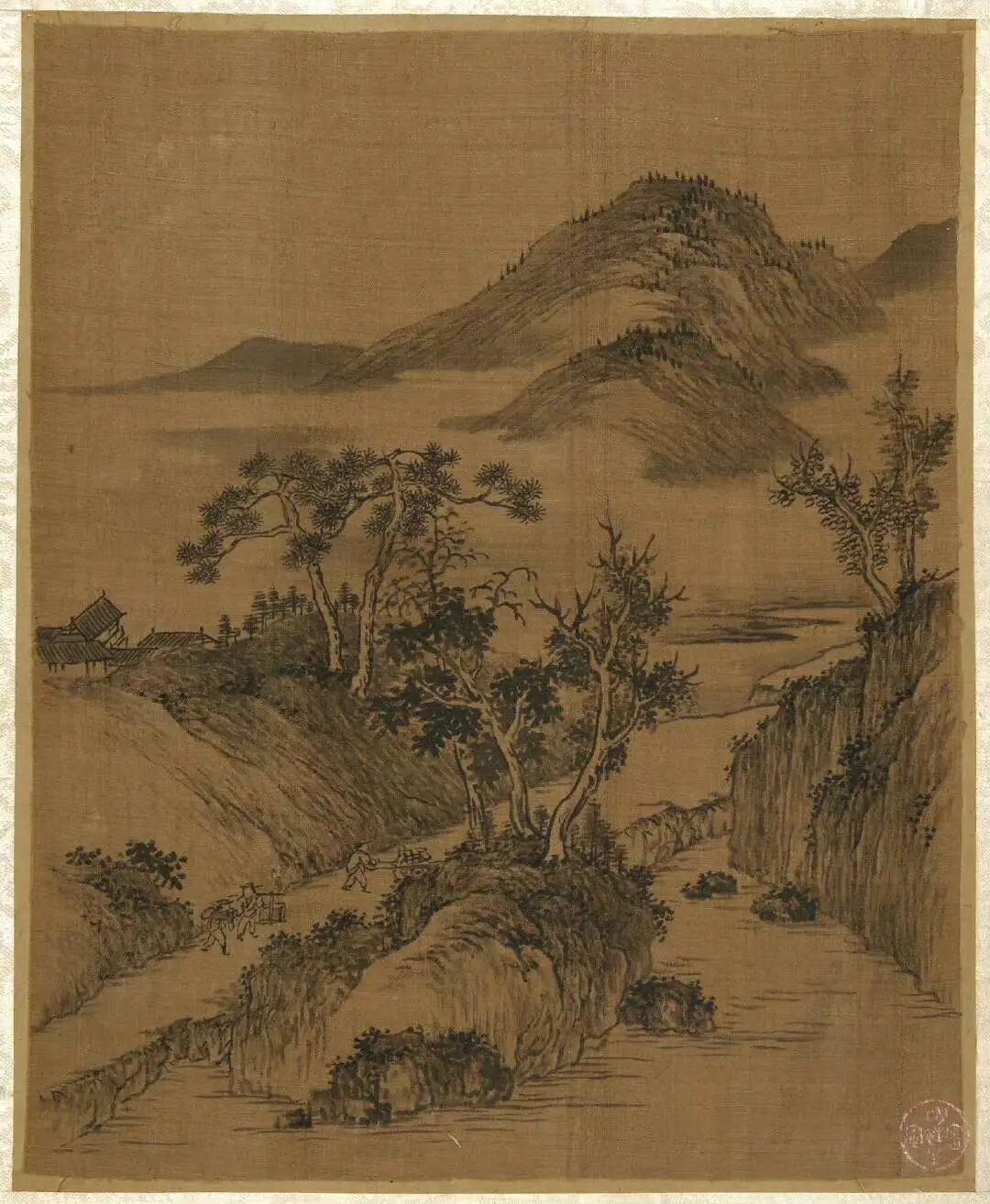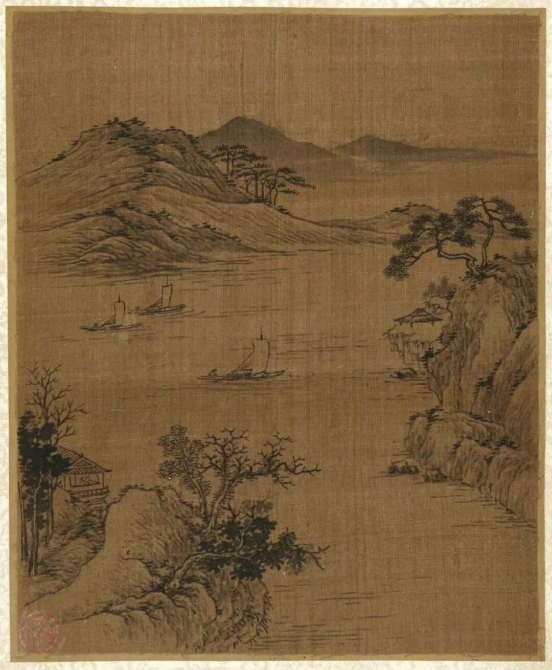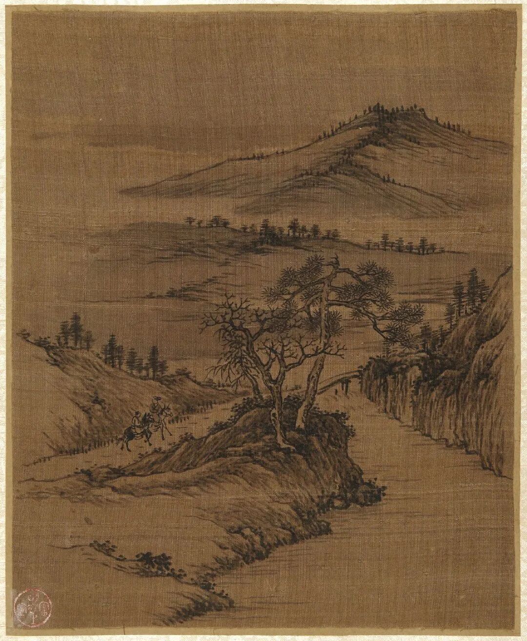 倪瓒的绘画开创了水墨山水的一代画风,与黄公望、吴镇、王蒙并称"元代四大家"。画法疏简,构图多取平远之景,景物极简。