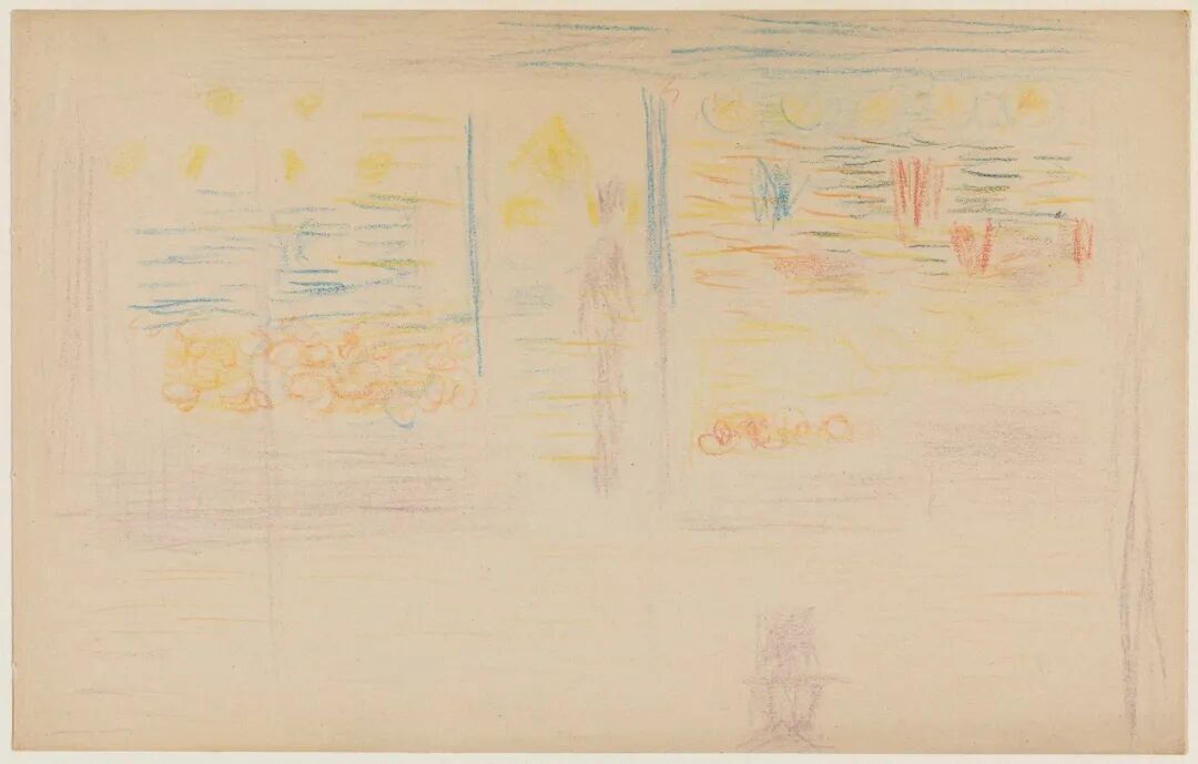 在布雷斯特军事学院学习一年后,他回到巴黎,与朋友 Aman-Jean 共用一间工作室,同时还在 16 rue de Chabrol 租了一间小公寓。在接下来的两年里,他致力于掌握单色绘画的艺术。他于 1883 年在沙龙展出的第一件作品是康泰 (Conté) 的阿曼-让 (Aman-Jean) 蜡笔画。他还仔细研究了欧仁·德拉克洛瓦 (Eugène Delacroix) 的作品,并对他对色彩的运用做了笔记。
