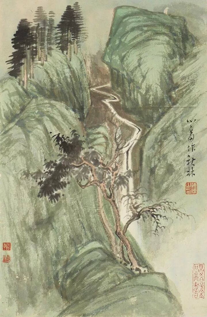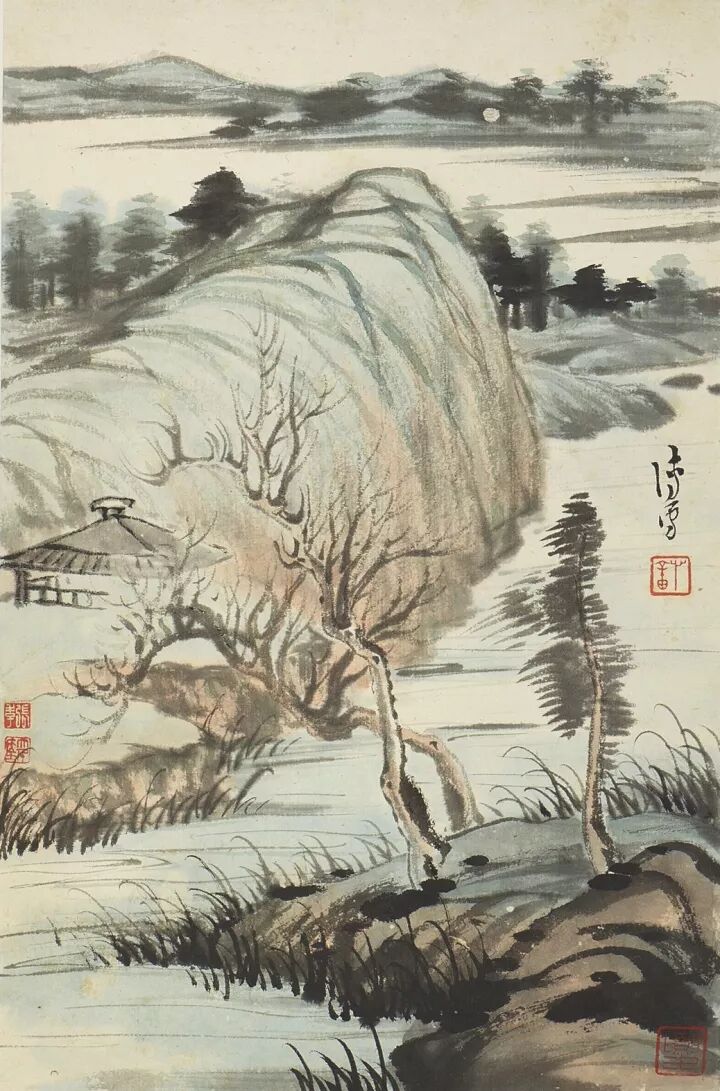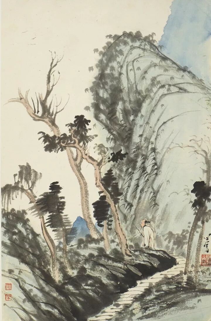 自从1928年,经近代诗人陈三立(1853-1937)引见在北京相识后,张大千和溥心畬开始了长达近半个世纪的交游。彼时他们的画经常一起在北平的琉璃厂展出,销路甚畅。1935年8月,北京琉璃厂集萃山房经理周殿侯首先提出“南张北溥”之说,于非闇写下了一篇《南张北溥》的短文,发表在《北平晨报》之画刊,文中写道:“张八爷(指大千)是写状野逸的,溥二爷(指心畬)是图华贵的。论入手,二爷高于八爷;论风流,八爷未必不如二爷。南张北溥,在晚近的画坛上,似乎比南陈北崔、南汤北戴还要高一点儿……”。这两位比肩的画坛巨匠,影响了画坛数十年。