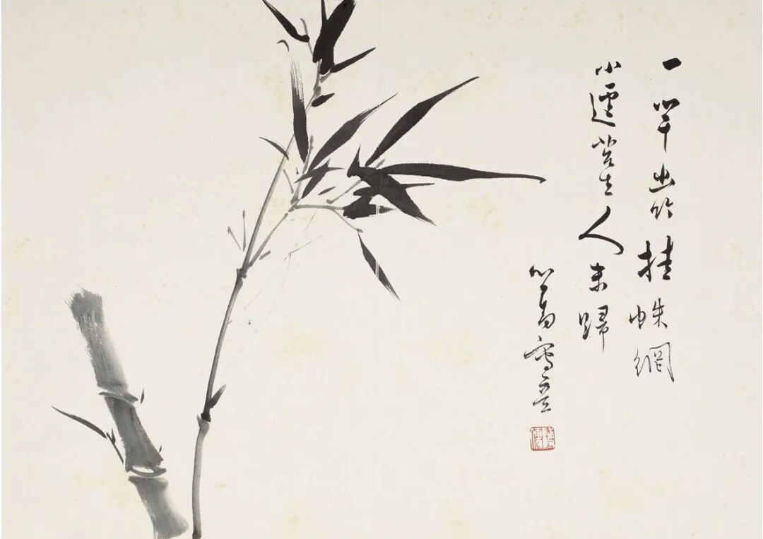 (六)一竿幽竹挂蛛网,小径苔生人未归。心畬写意。