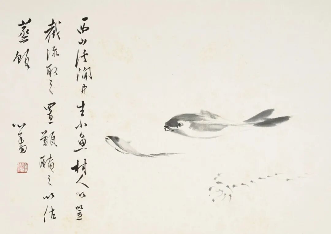 (十三)西山溪涧中生小鱼,村人以笠截流取之。置甑醃之,以佐蒸饭。心畬。