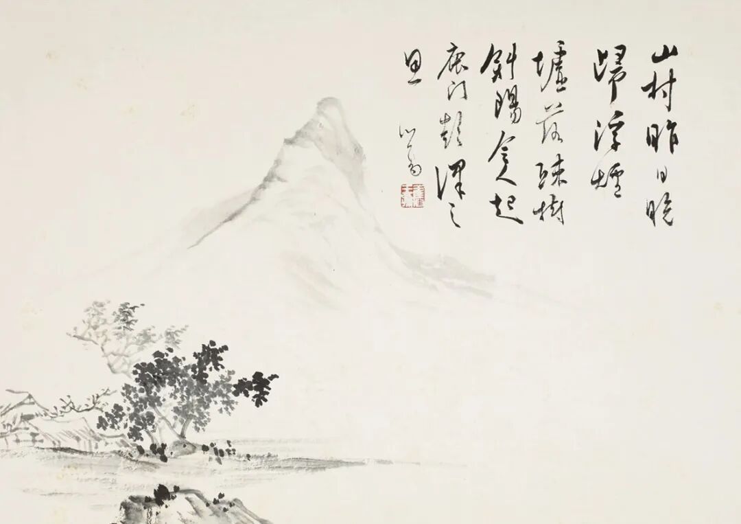 (四)山村昨日晚归,浮烟墟落,疏树斜阳,令人起鹿门、彭泽之思。心畬。