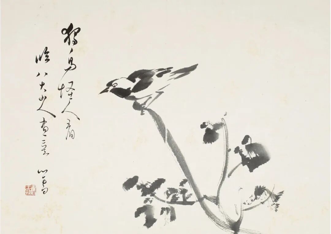 (十二)独鸟怪人看。临八大山人画意。心畬。