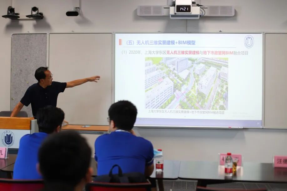 △上海大学土木工程系结构工程教研室主任 舒展(左)、上海品览数据科技有限公司CPO房宇巍(右)揭牌仪式现场