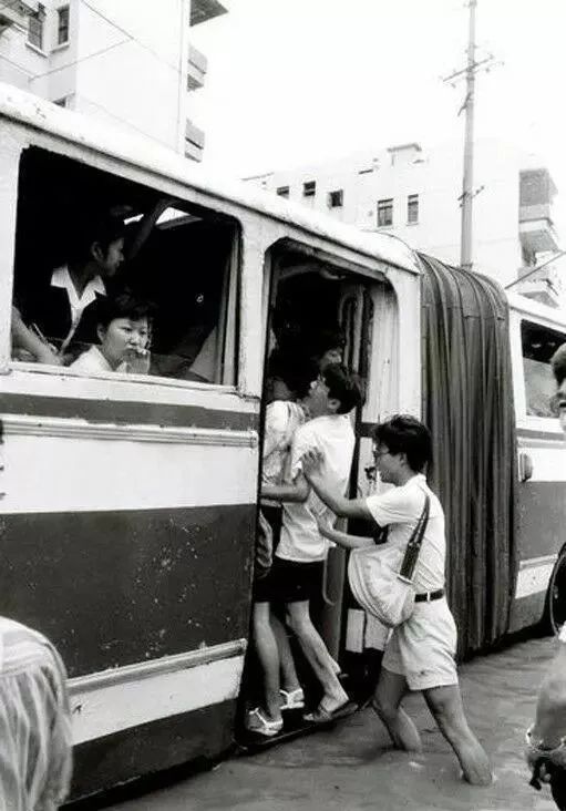 那时公交车相当挤。有时车门都关不上,需要后面有人推。