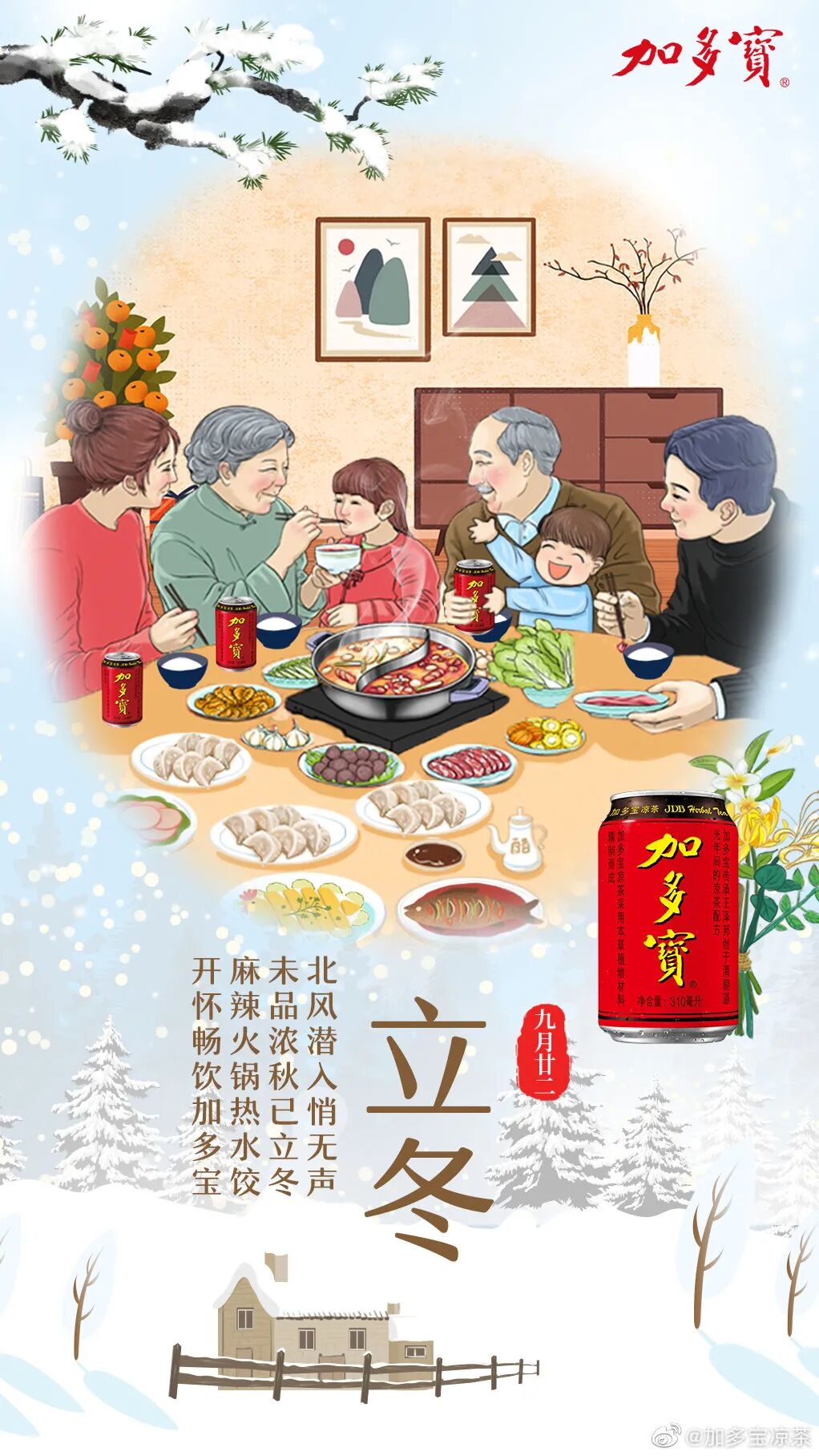 #立冬#今日是立冬,正所谓“立”为始、“冬”为终,古时人们习惯把立冬作为冬季的开始,时至今日依然如此。在立冬这天,宜吃火锅、水饺来“补冬”,同时别忘了来一罐加多宝预防上火,以良好的身体状态迎接“远道而来”的冬天。
