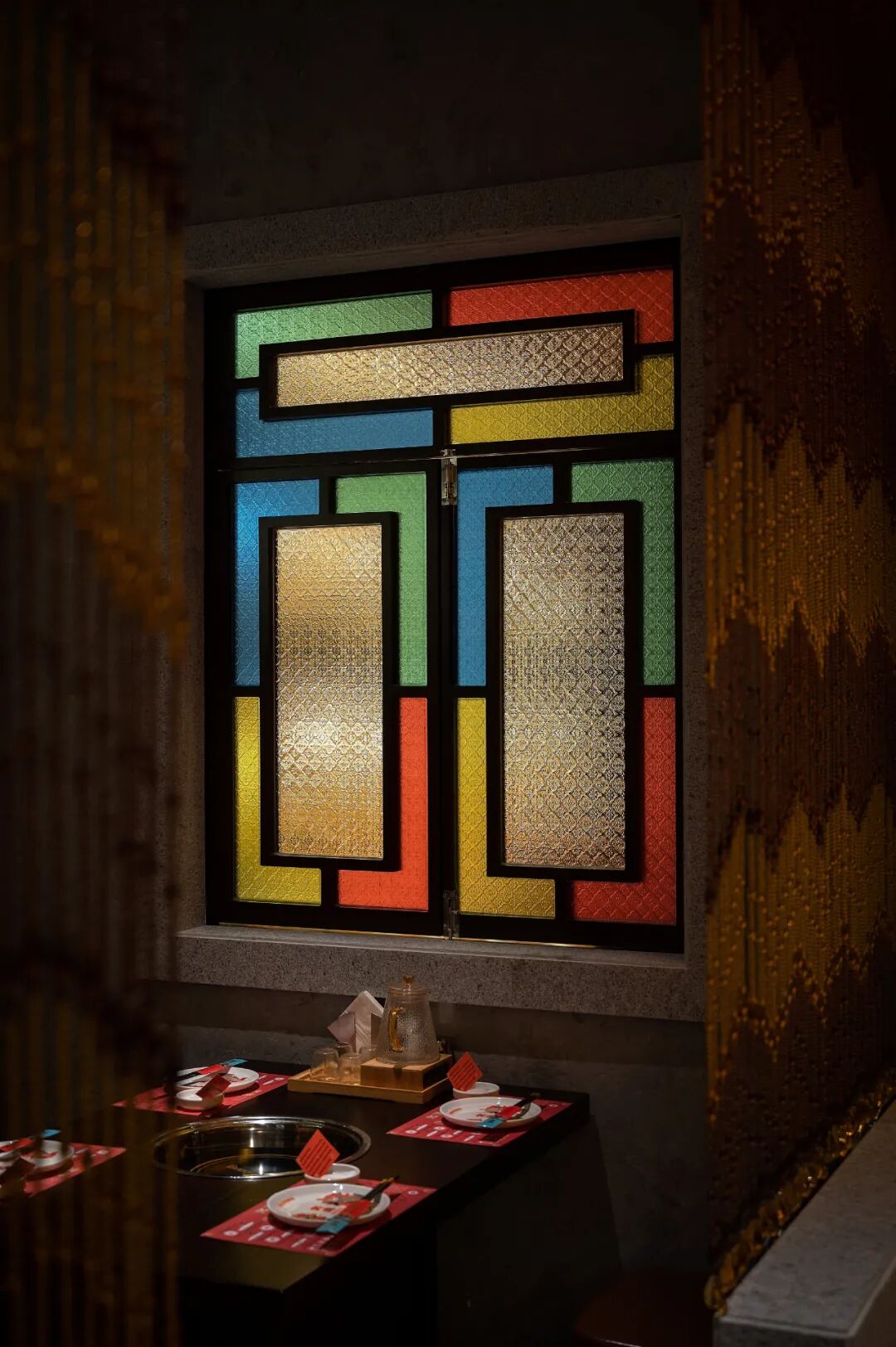 在整个门头的设计中,入口内退的方式参考了广式骑楼得到一个可以等位和打卡的空间,同时也增强了店铺的展示面。小红砖背景加凸面金属logo 传统印象中的广式油纸灯笼 彩色海棠玻璃 关公雕塑和作为背景的趟栊门,都充斥满满的广式风情。
