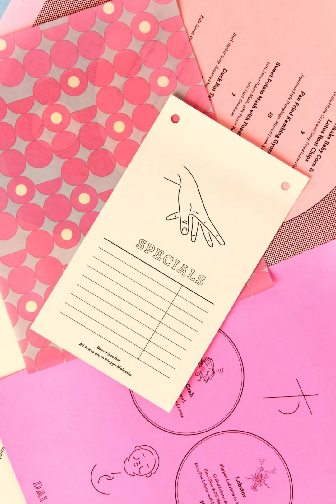 Buncit 在马来语中意为“大肚腩”,可爱的名字配以粉色,摆脱油腻感,展现时髦的体验。用手抓食物的形象,更添加了一些轻松,成为品牌方案中的重要元素。