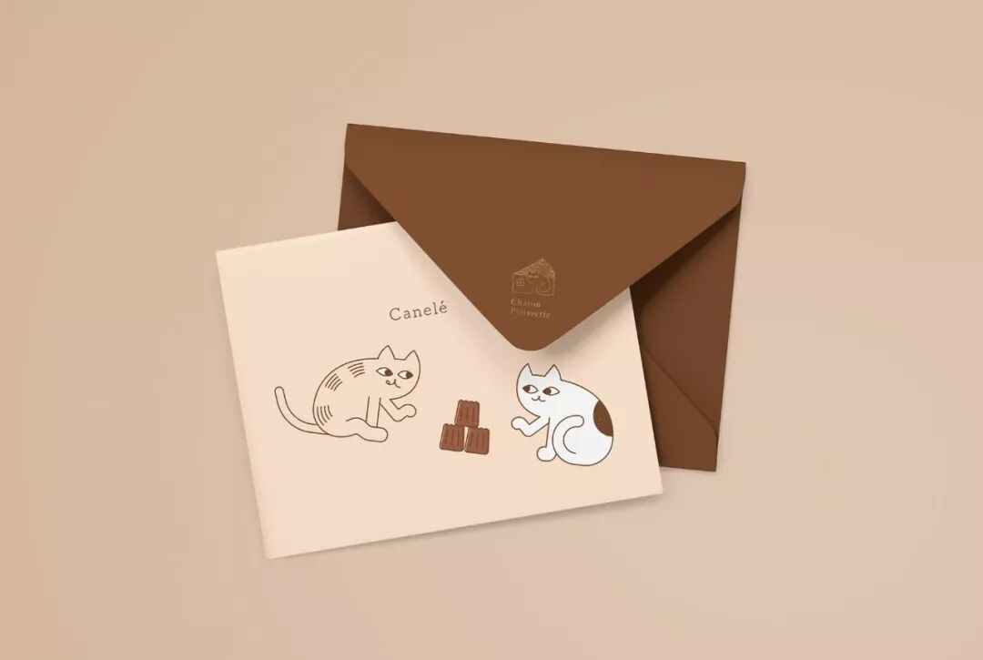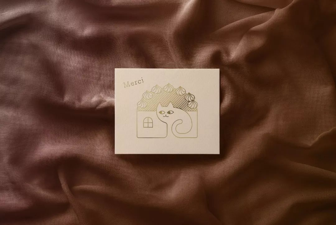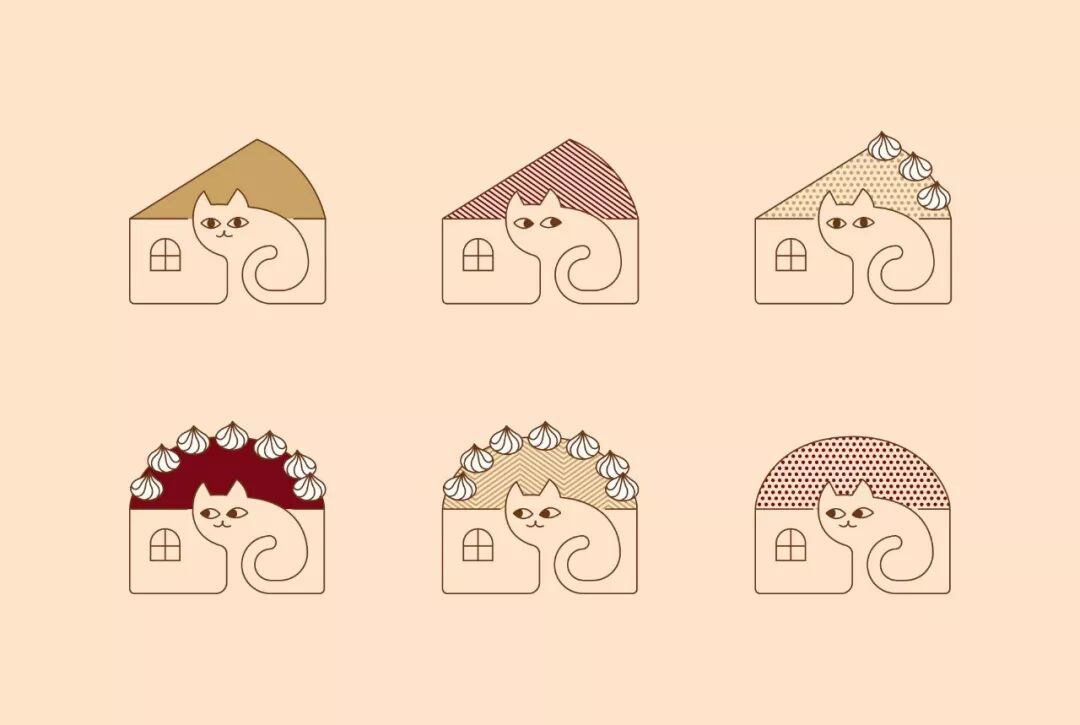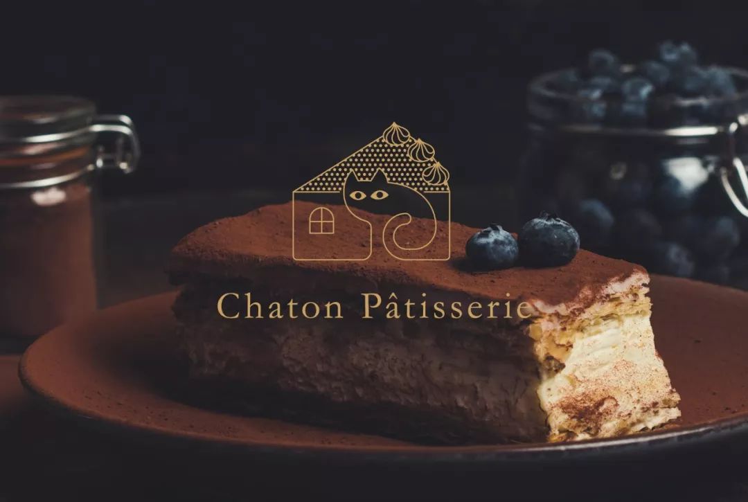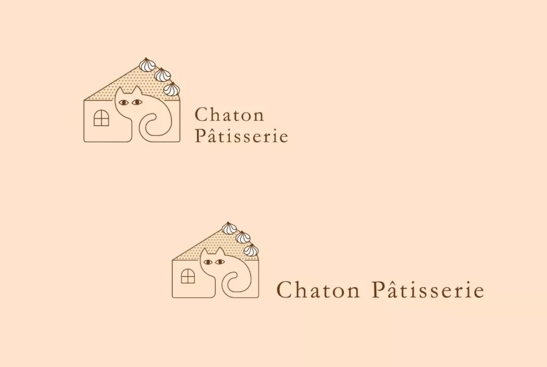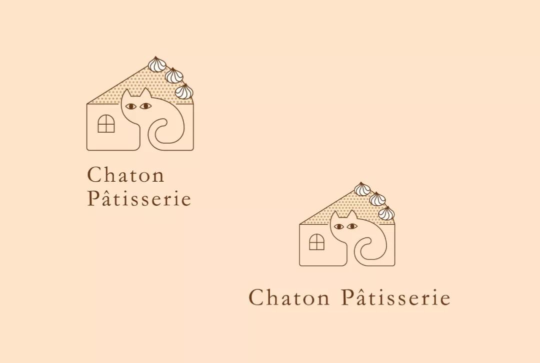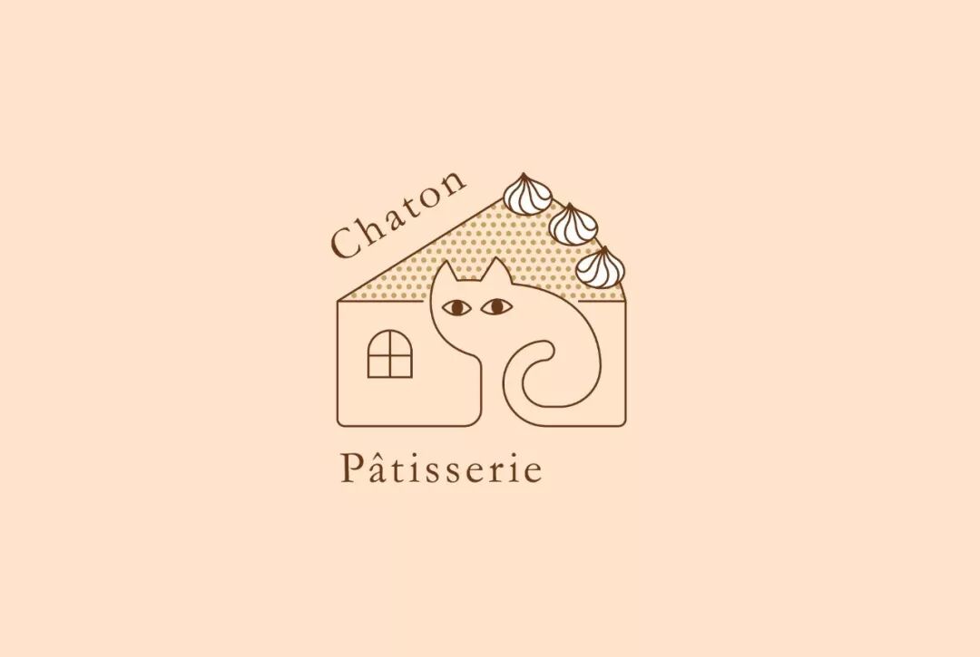品牌名称在法语中是“小猫”之意,Logo 结合了猫、房子、蛋糕三个元素,符合品牌身份。通过变化,也可以表现不同的蛋糕种类,可以用于品牌 VI 方案当中。