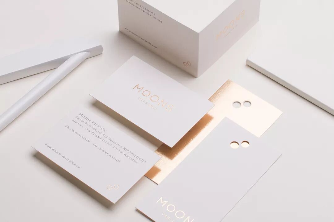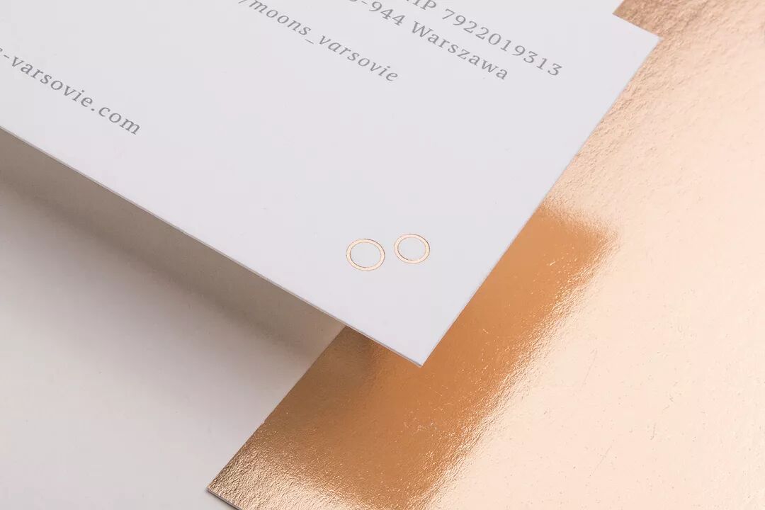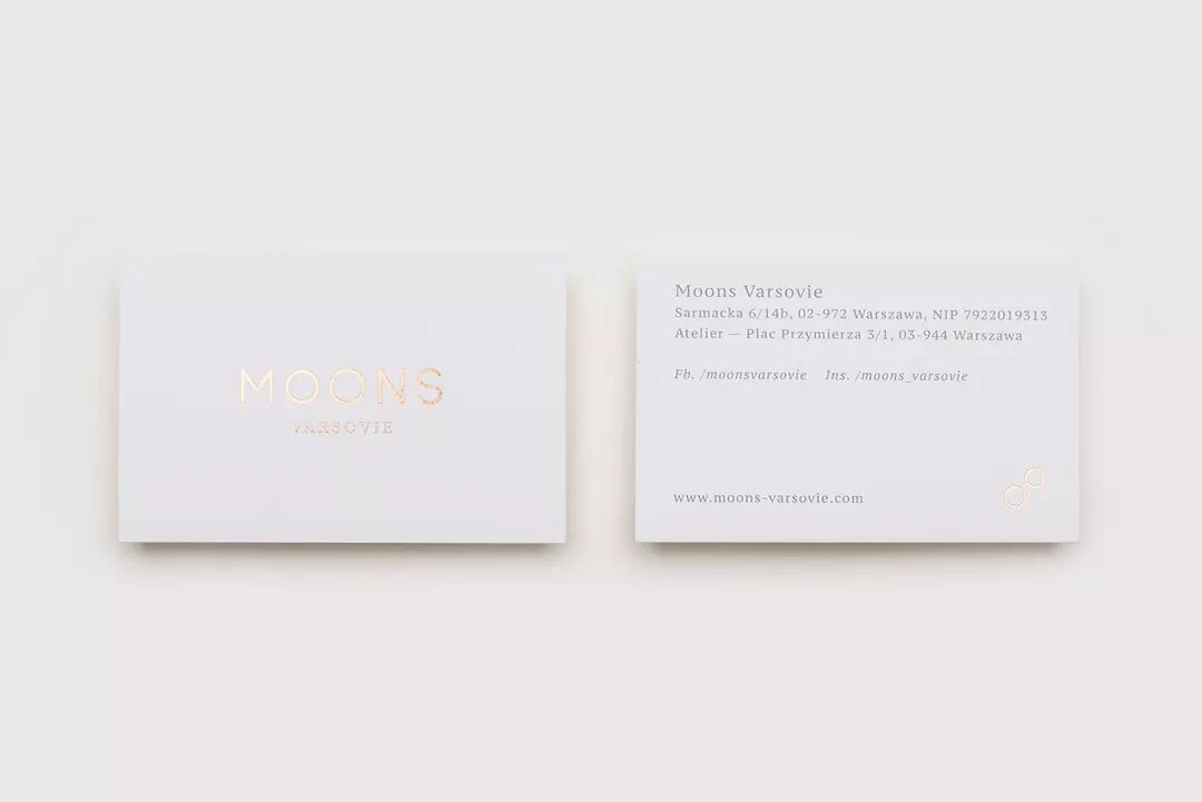 Moons Varsovie 是一家婚礼行业公司,以浪漫主义与简约为品牌理念,在品牌 VI 设计中,设计师使用淡淡的暖色调营造出温和的质感,搭配玫瑰金的特殊印刷,让品牌视觉更具神秘气息。