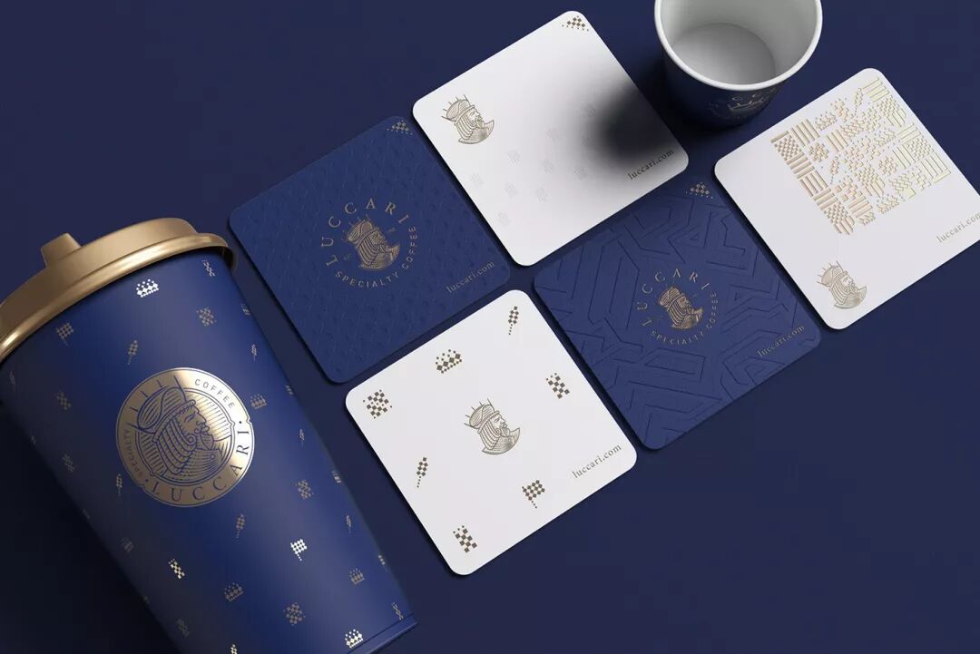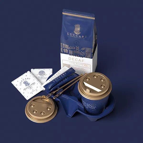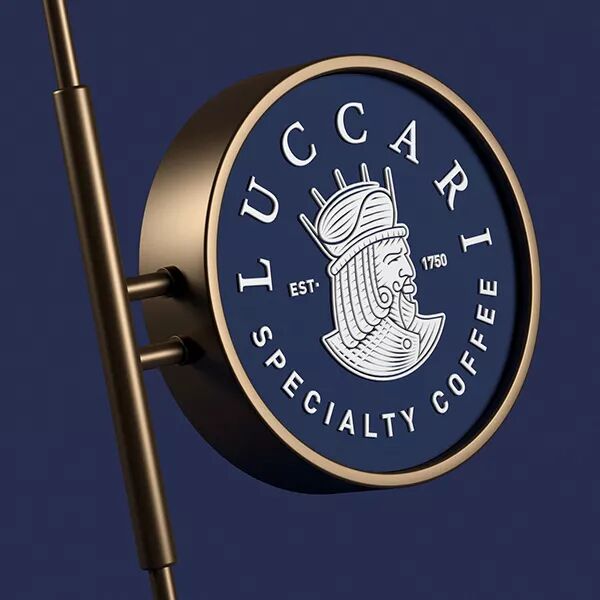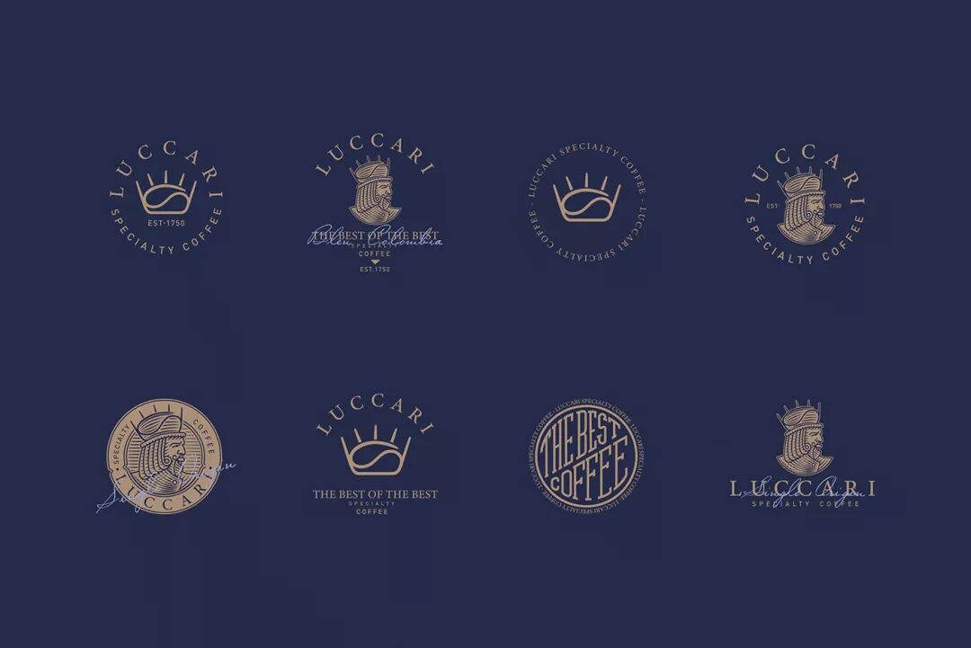 LOGO 国王人物形象呈现,象征“Luccari ”是咖啡之王,辅助图形由几何图形拼接组合而成,象征王下贵族,同时也寓意着汇聚了多个地区的咖啡豆。