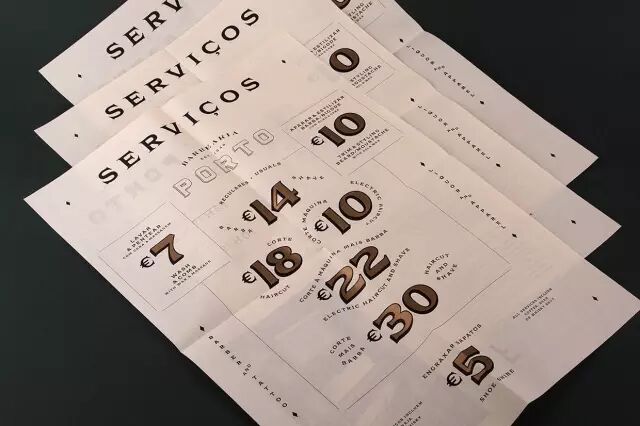 在理发店的橱窗上采用了玻璃镀金工艺,这种近乎失传的高级手工艺配得上这里的历史。在其他用途上同样沿用了金色,与黑色的凸版印刷搭配,更突显了精致与经典。除此之外,也融入了一些彩色的元素,能更多的吸引现代的年轻人。
