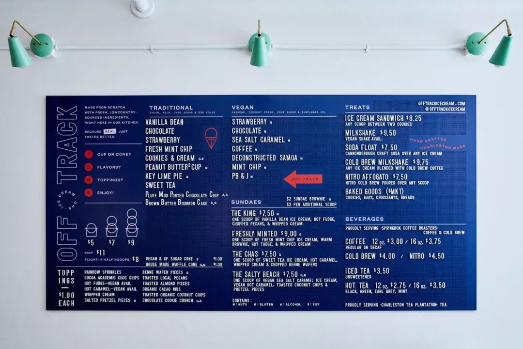 美国工作室 Stitch Design Co. 为冰淇淋店 Off Track 设计的品牌视觉方案。