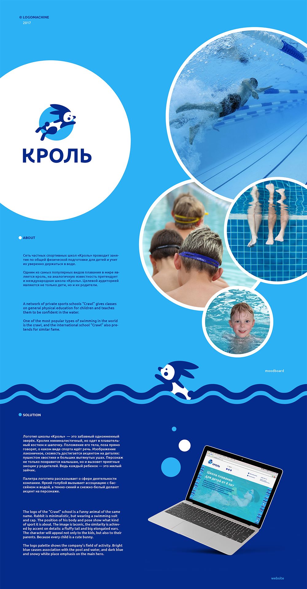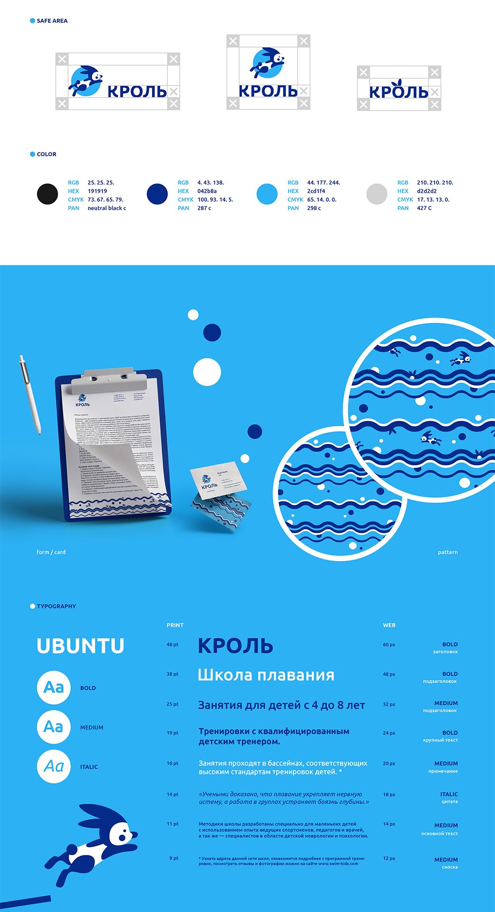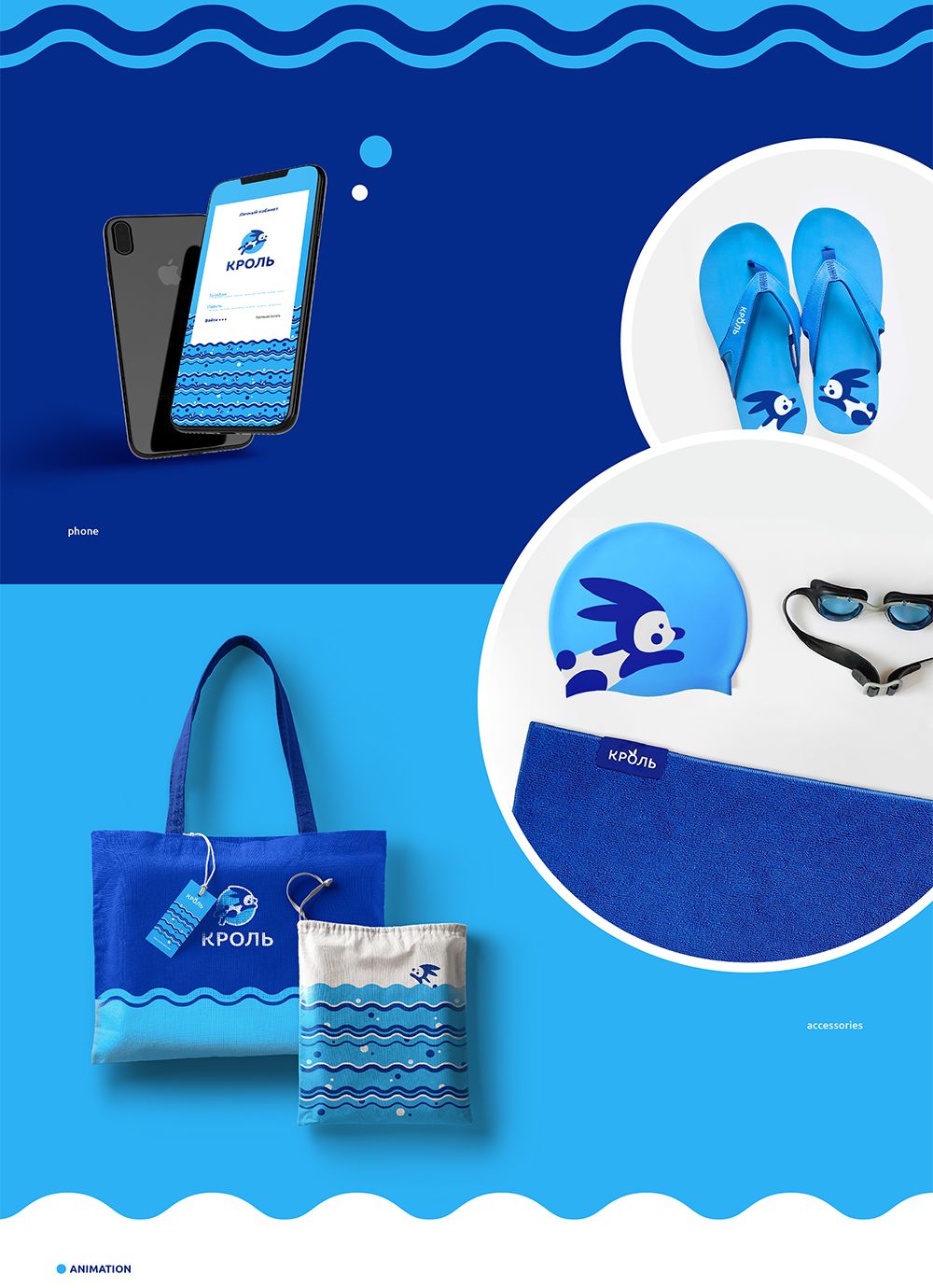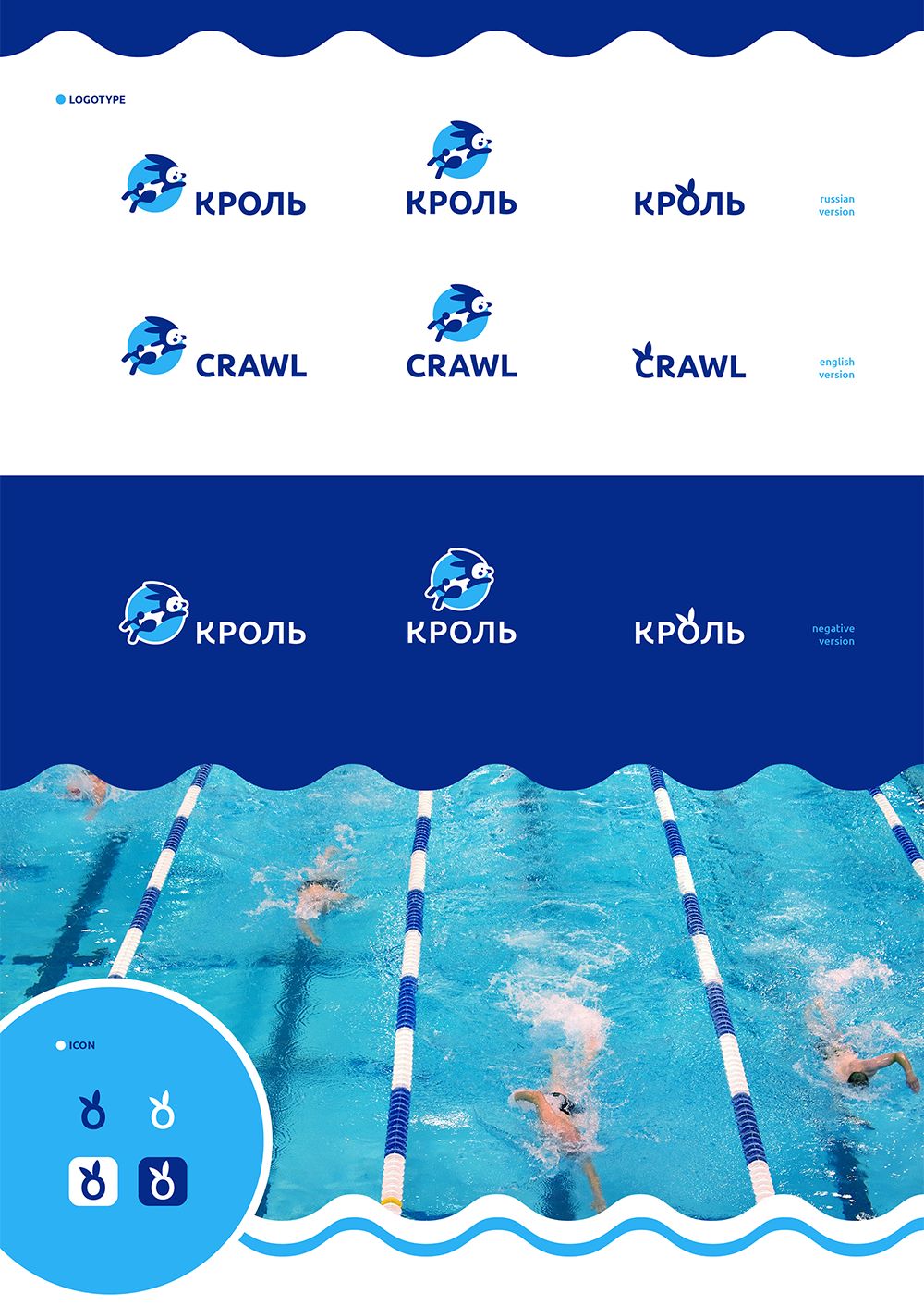 俄罗斯工作室 Logo Machine 为当地的儿童游泳教学机构Кроль / Crawl 提供的品牌 VI 方案。