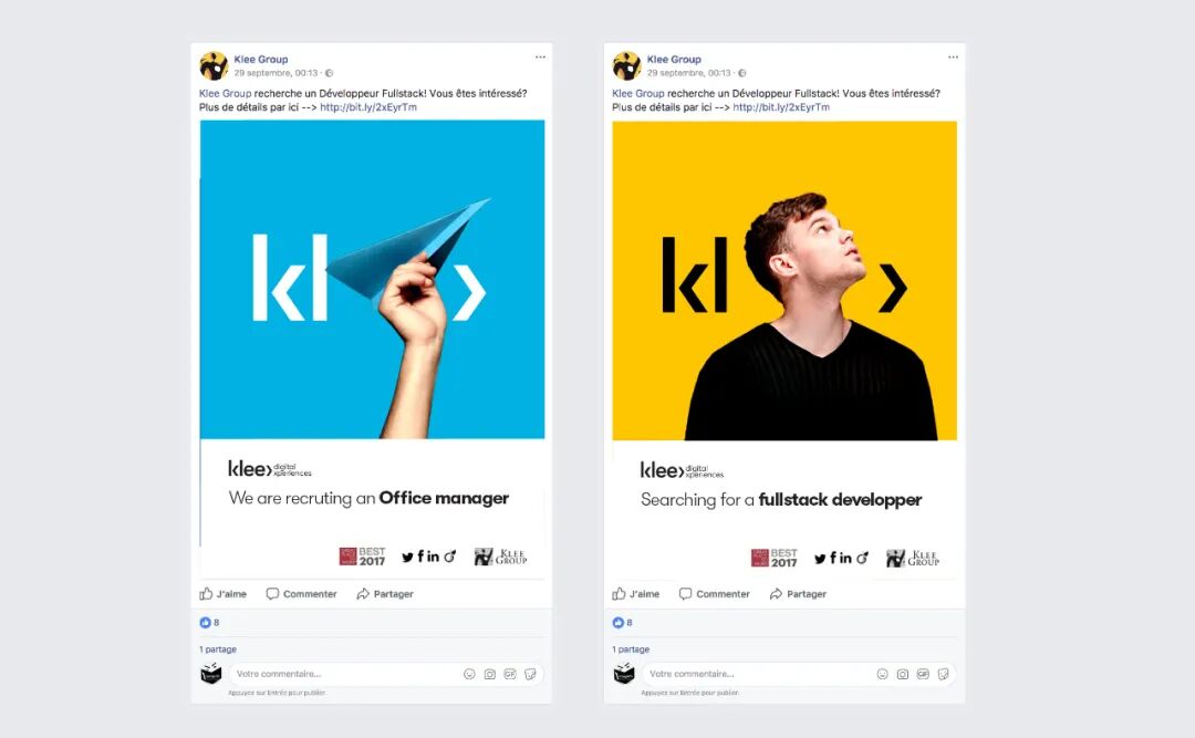 全新升级的品牌LOGO,只需用箭头跟随 Klee 一词即可。这个技巧立即将 Klee 与数字领域联系起来,并带来了一种不可忽视的图形力量。通过删除“ee”,我们获得了一个“Kl>”信标标志,它将充当服务通信元素的容器。