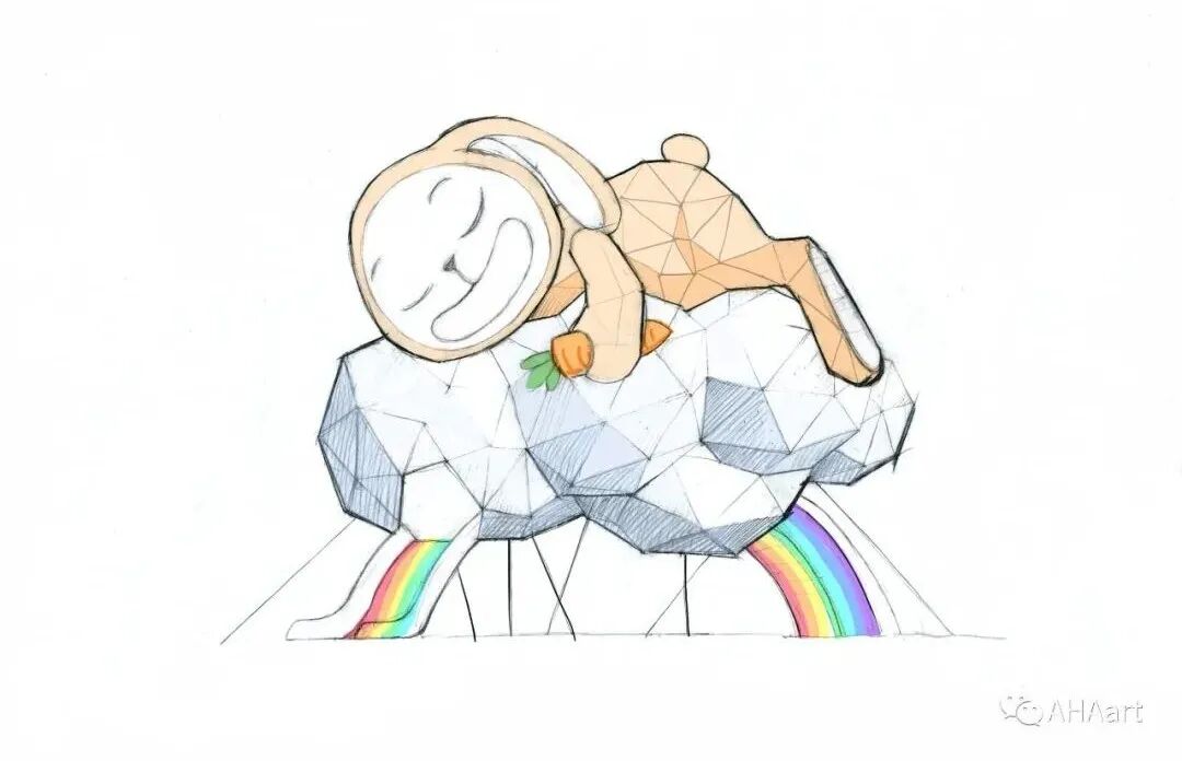 于是,皮皮兔就趴在云朵上美美的睡着了,手中还拿着最爱的胡萝卜——这便是皮皮兔最终的姿态。