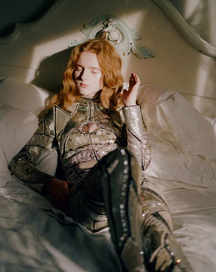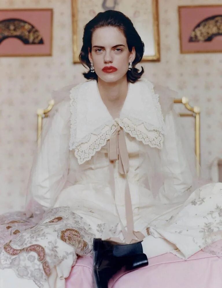 Jens Ingvarsson的镜头之中,事物彷佛都冠以浪漫主义的头纱,那些花卉的纹样、带有宫廷风的蕾丝、象征女性权利的垫肩纷纷展现着自己的魅力。