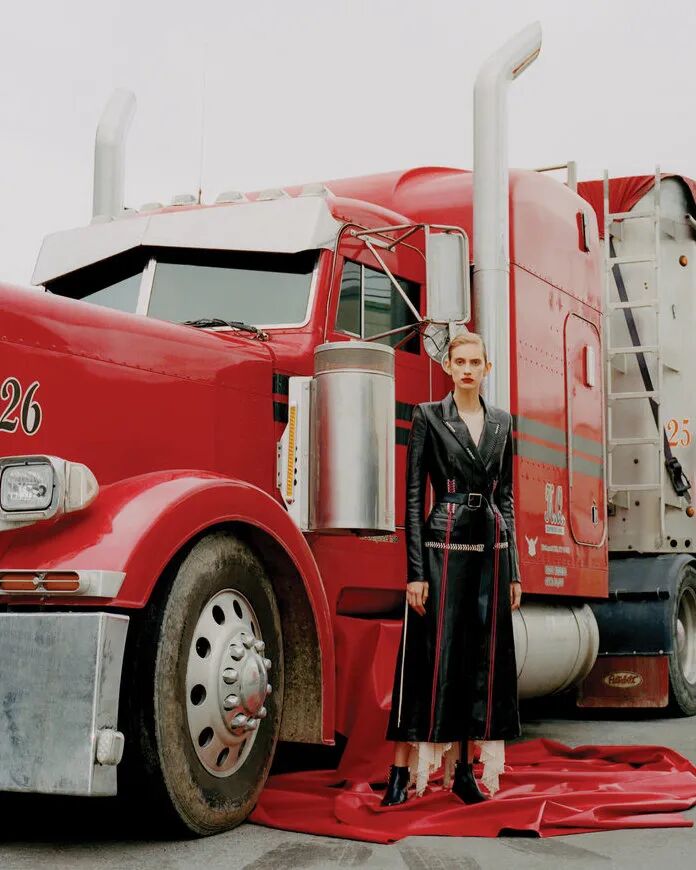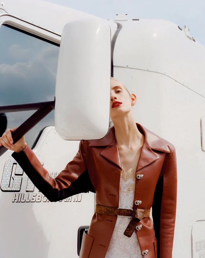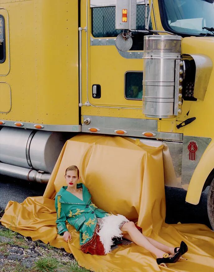 Jens Ingvarsson以多色彩的机车为背景,表现了穿着工装女生的力量与张力。鲜明的色彩搭配、有趣的元素与酷感十足的pose,让人们感受到了镜头赋予设计的感染力。