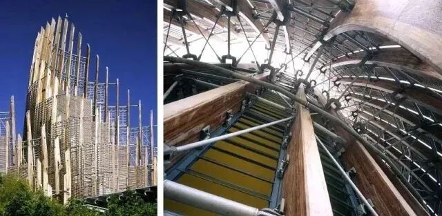 由于整个屋顶的结构有十分复杂的几何曲率,所有钢梁都是靠手工一一焊接的。这样的作品本身就成了一件美妙的雕塑,仿佛从大地上生长出来一般,具有鲜明的个性特征。