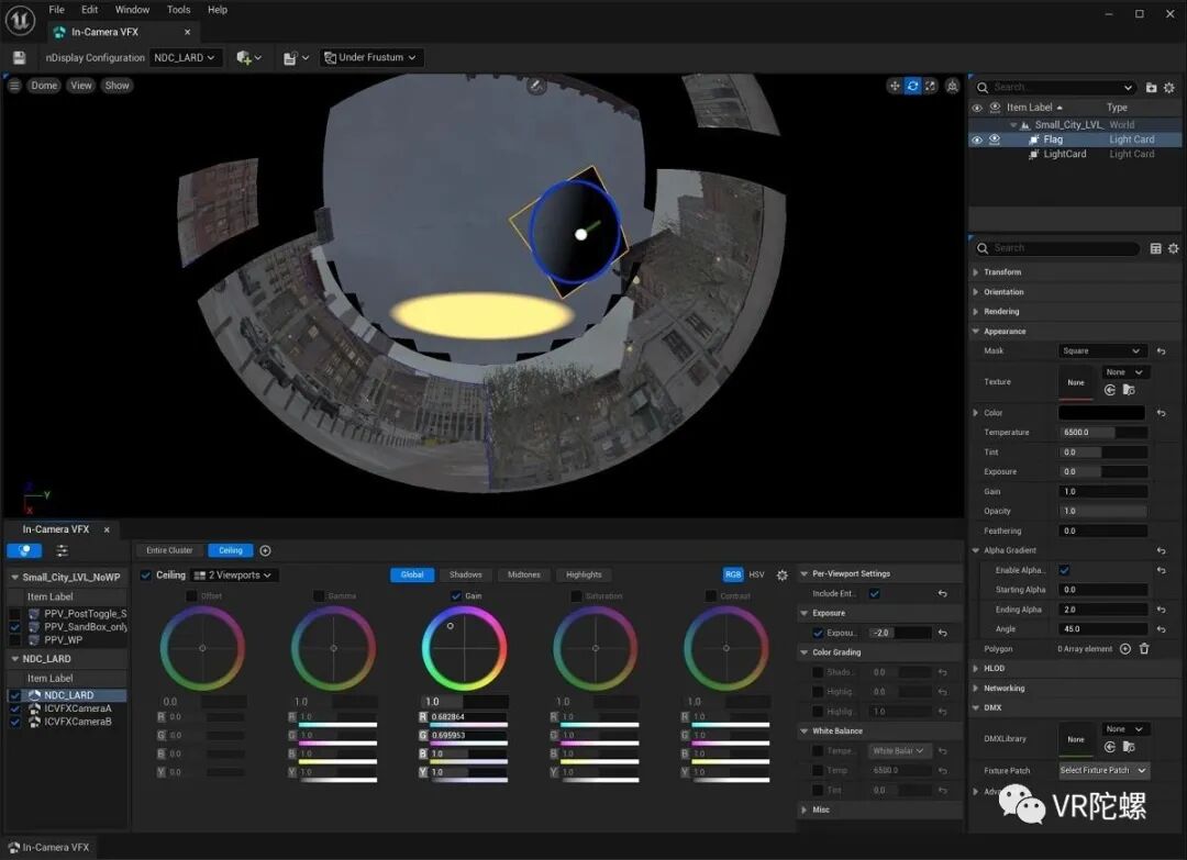 ICVFX编辑器还承载了一个改进的光卡系统的接口,该系统显示为nDisplay墙的预览。除了使创建、移动和编辑灯卡以及保存模板变得直观和高效之外,新的灯卡还可以在墙上保持其形状,消除失真。