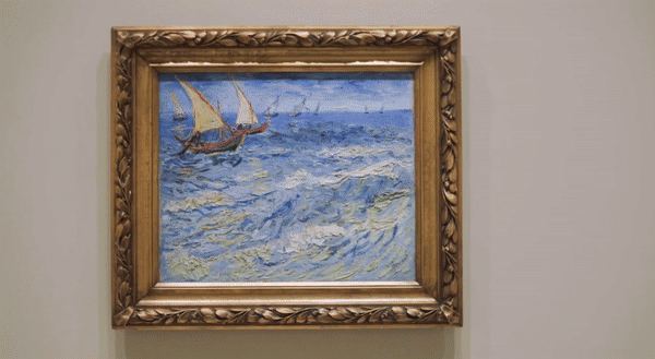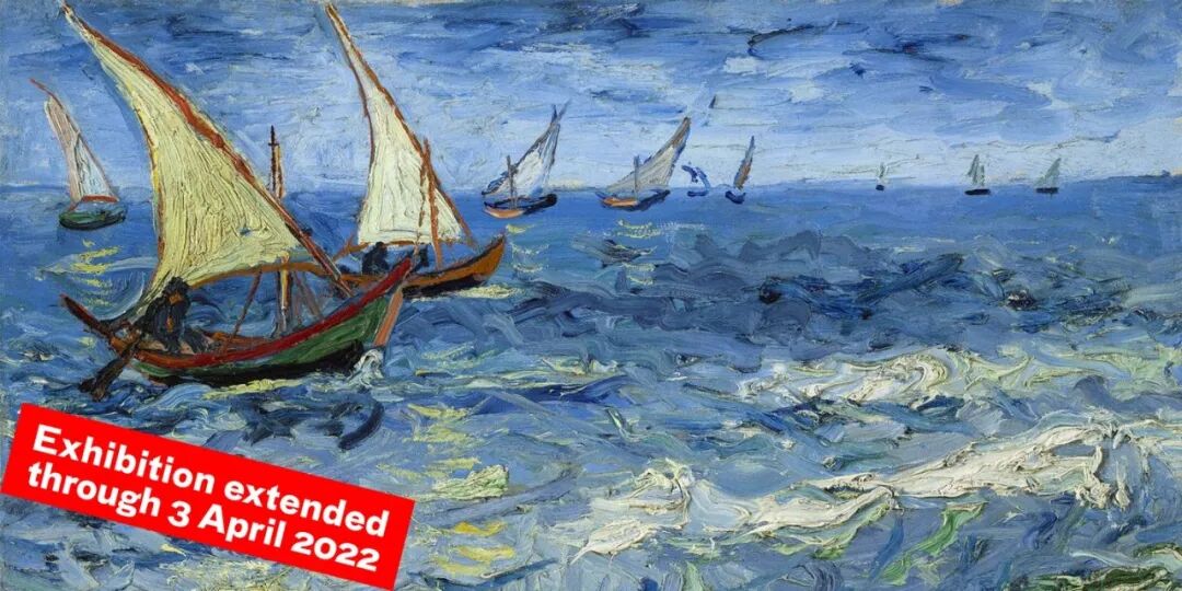 / “莫罗佐夫藏品展”的宣传视频片段(上)以及展期通告图背景(下)中都曾出现文森特·梵高的作品《The Sea at Saintes-Maries》,该画由俄罗斯莫斯科的普希金博物馆所有,为办展而外借至法国 / 图:转自路易·威登基金会官网
