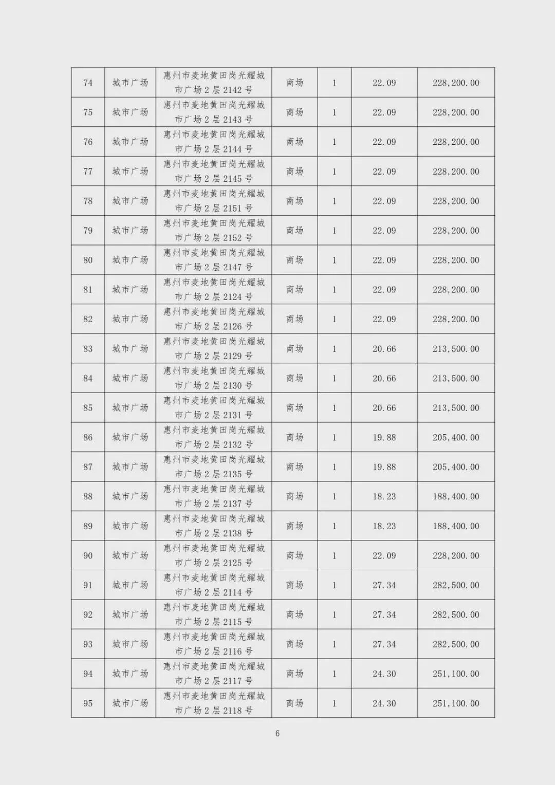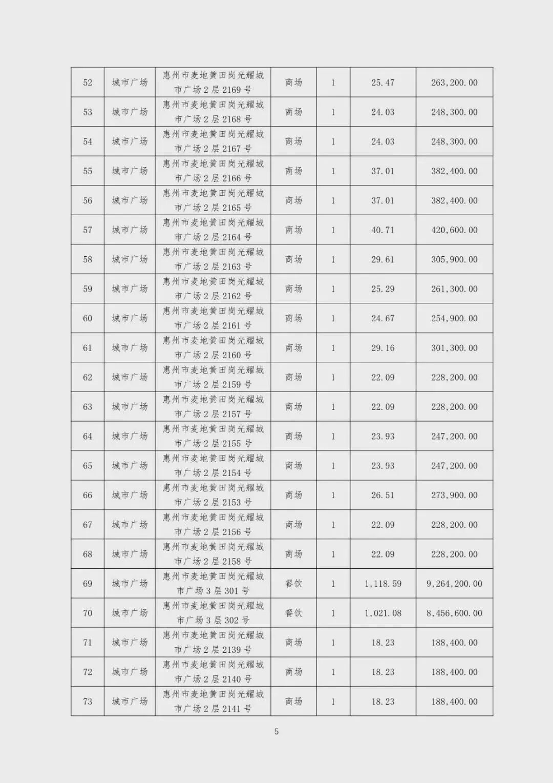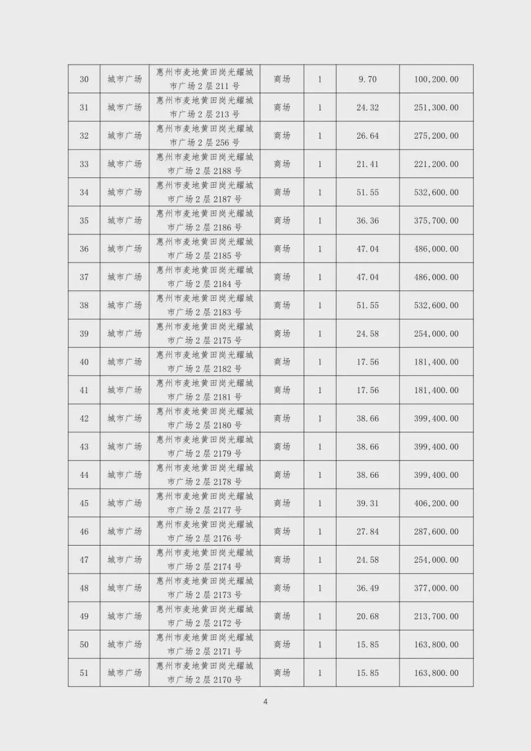 4.光耀集团名下城市广场项目有证、无证商铺、餐饮以及车库整体处置,以评估价合计96,101,400.00元作为起拍价进行公开拍卖。
