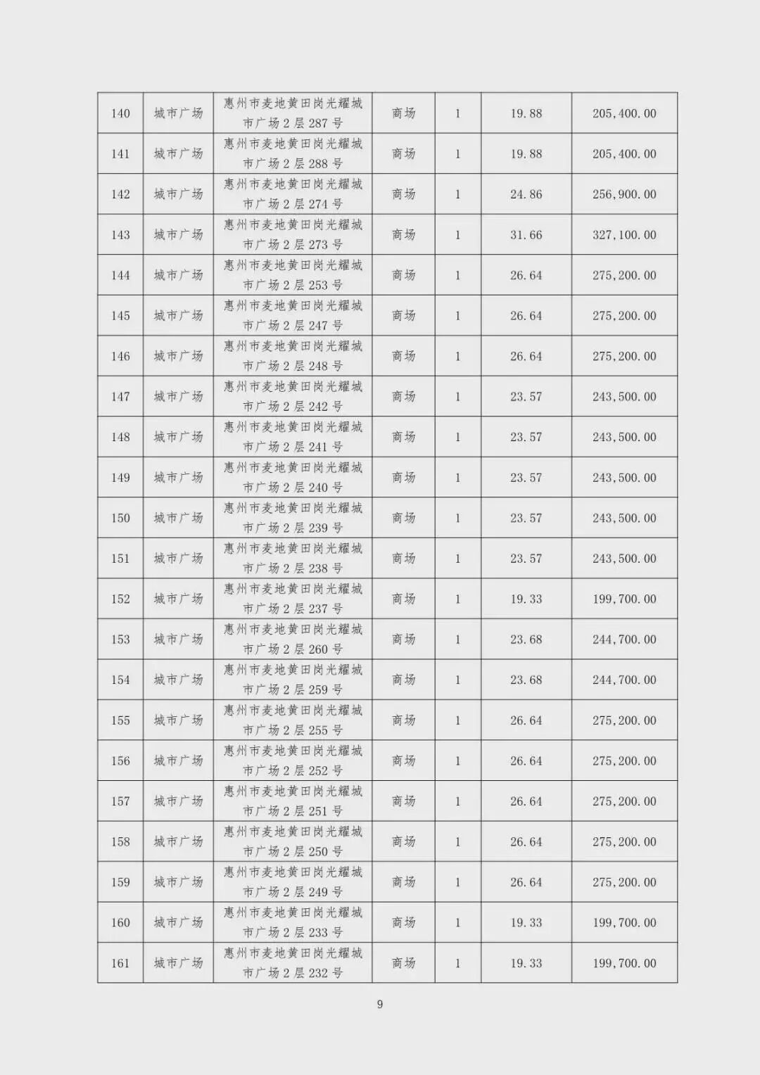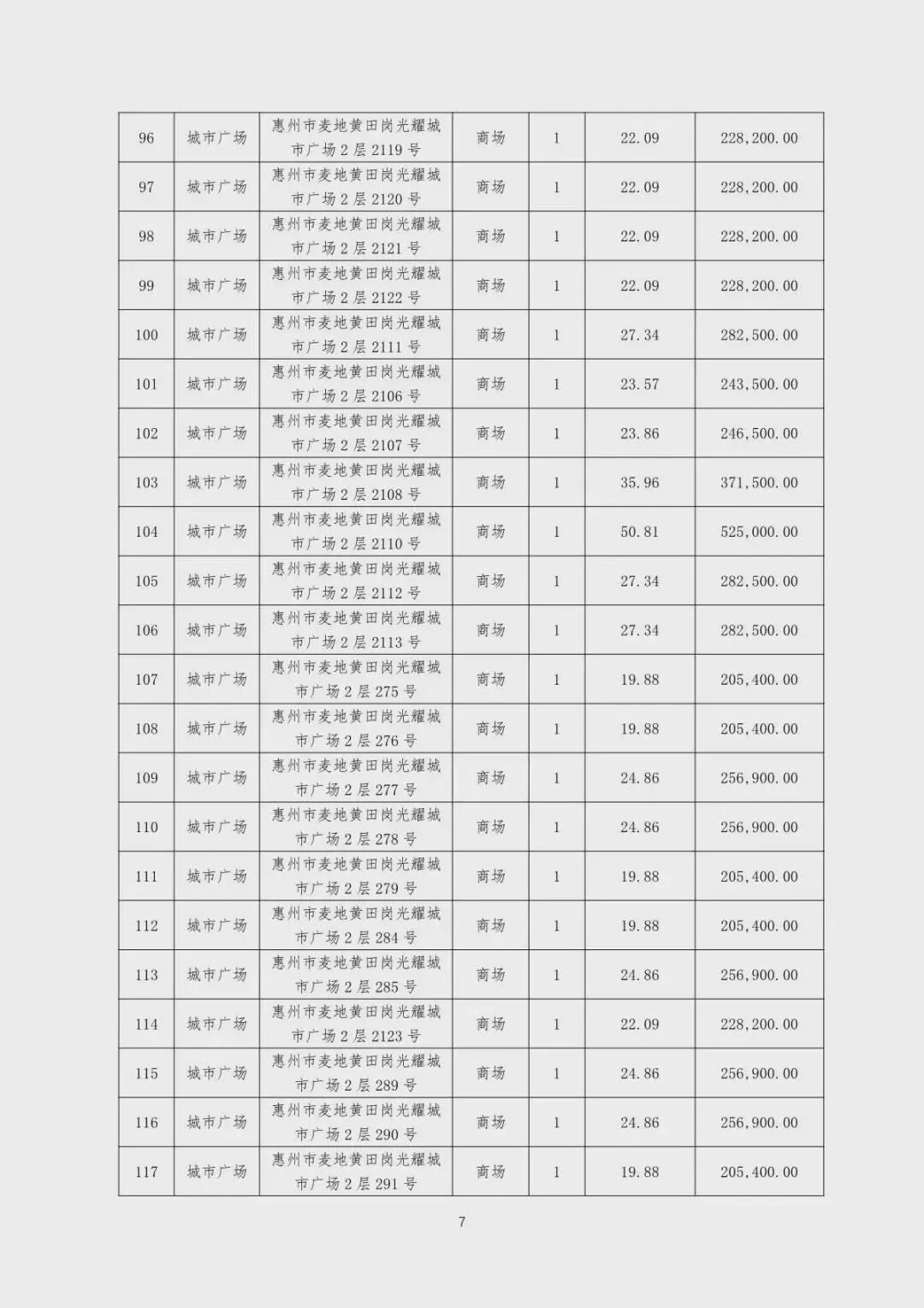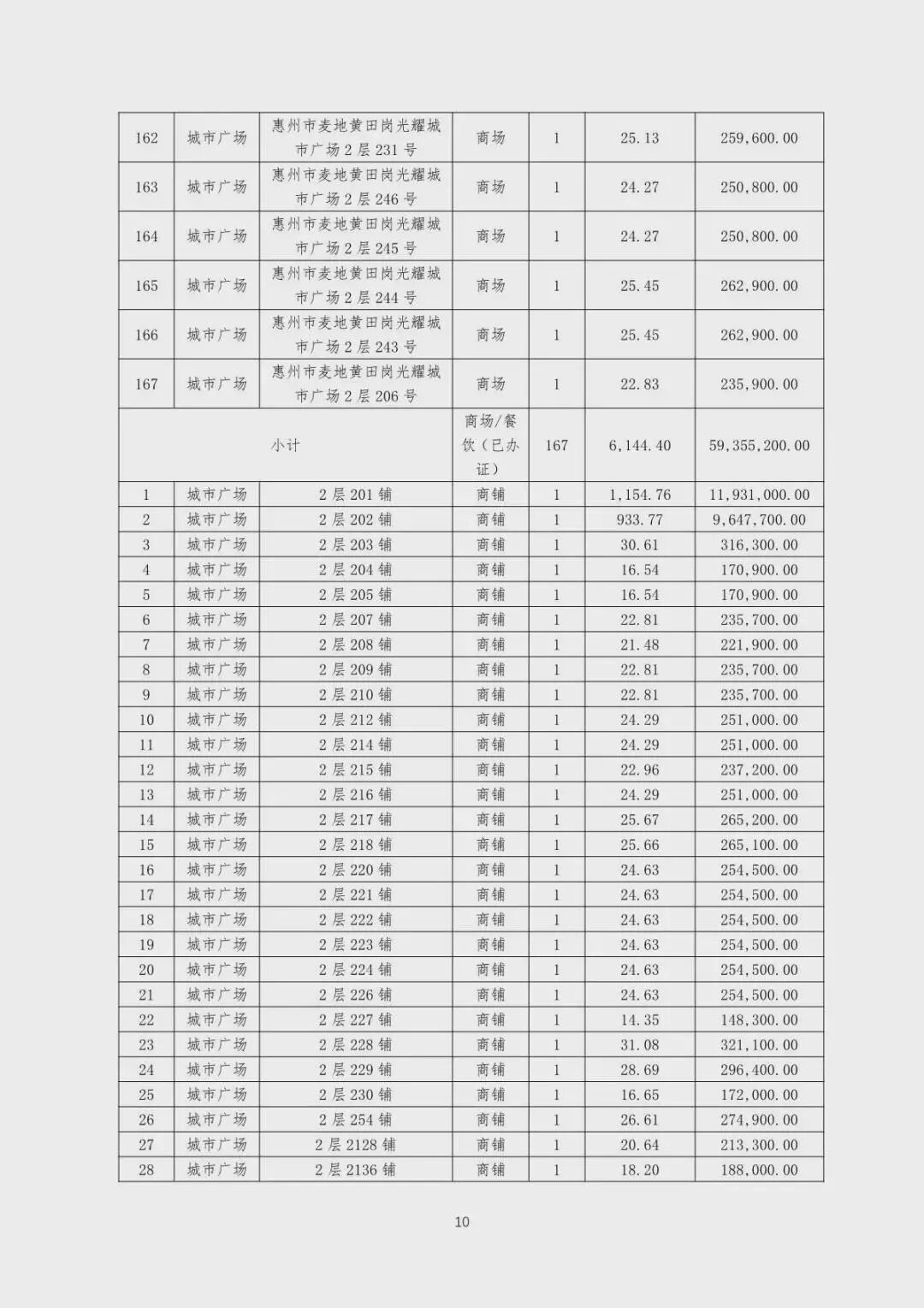 4.光耀集团名下城市广场项目有证、无证商铺、餐饮以及车库整体处置,以评估价合计96,101,400.00元作为起拍价进行公开拍卖。